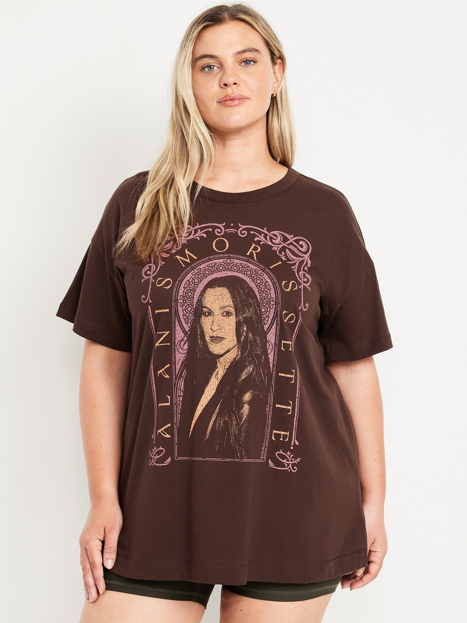 Oversized Alanis Morissette⢠T-Shirt: available exclusively online and at outlet stores, rib-knit crew neck, short drop-shoulder sleeves, licensed graphic, vented sides, © 2025 The Smashing Pumpkins All Rights Reserved., #805707