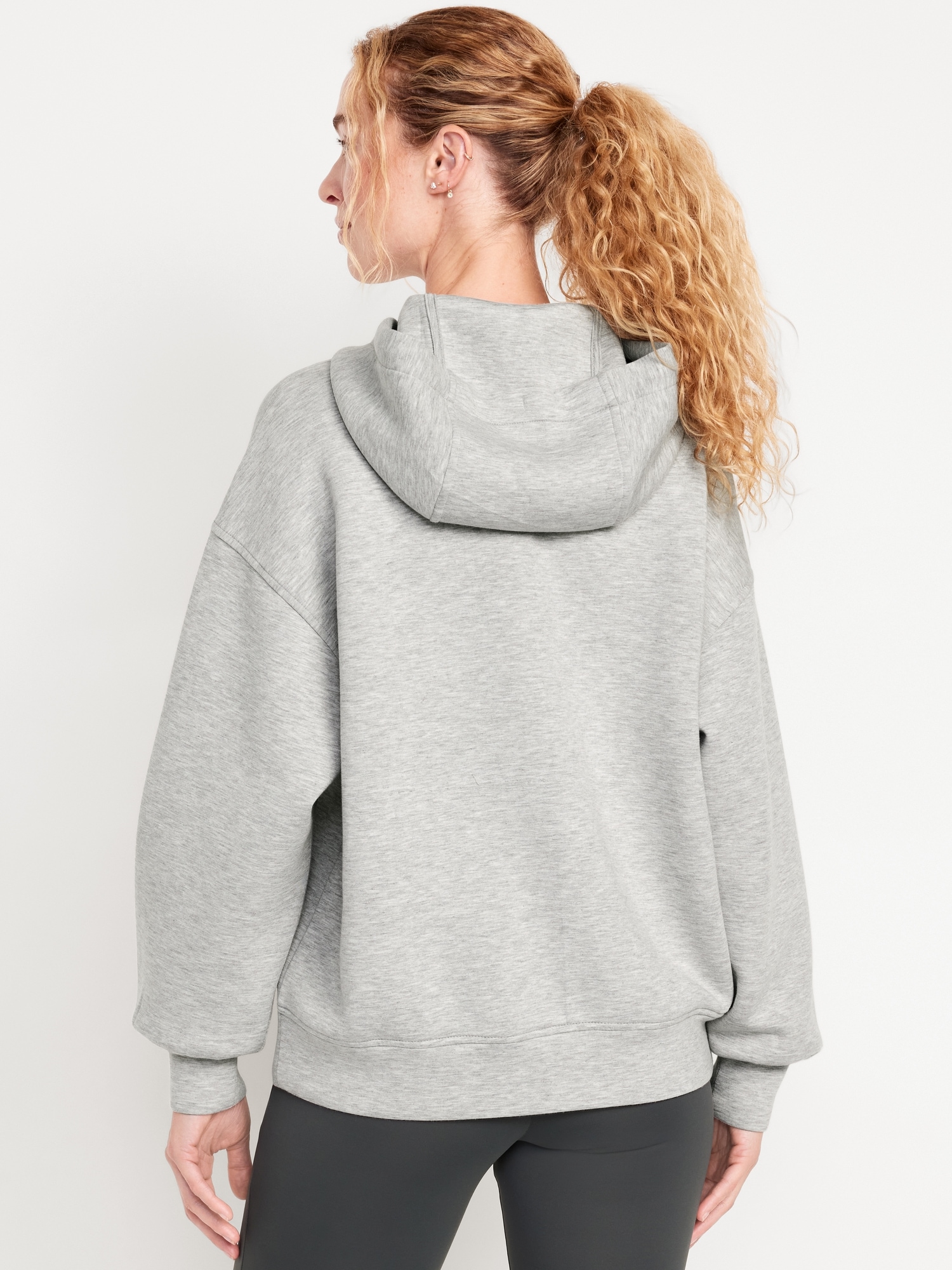 Oversized Bounce Fleece Zip Tunic Hoodie Sweatshirt: Featuring Bounce Fleece. A smooth, cooling finish that feels good and looks chic everywhere you go.drawstring hood, drop-shoulder sleeves, full-zip front, hand-warming pockets, breathable, #569981