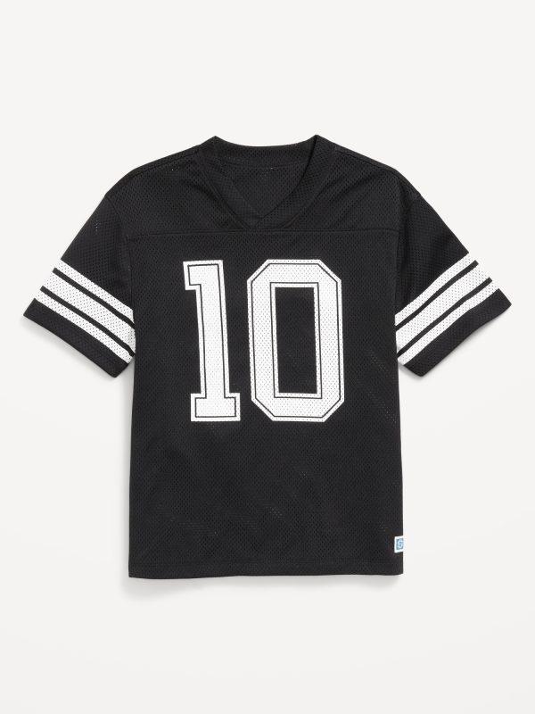 Oversized Boxy Mesh Graphic T-Shirt for Boys: v neck, short sleeves, drop shoulders, stripes at sleeves, graphic at front, #761889