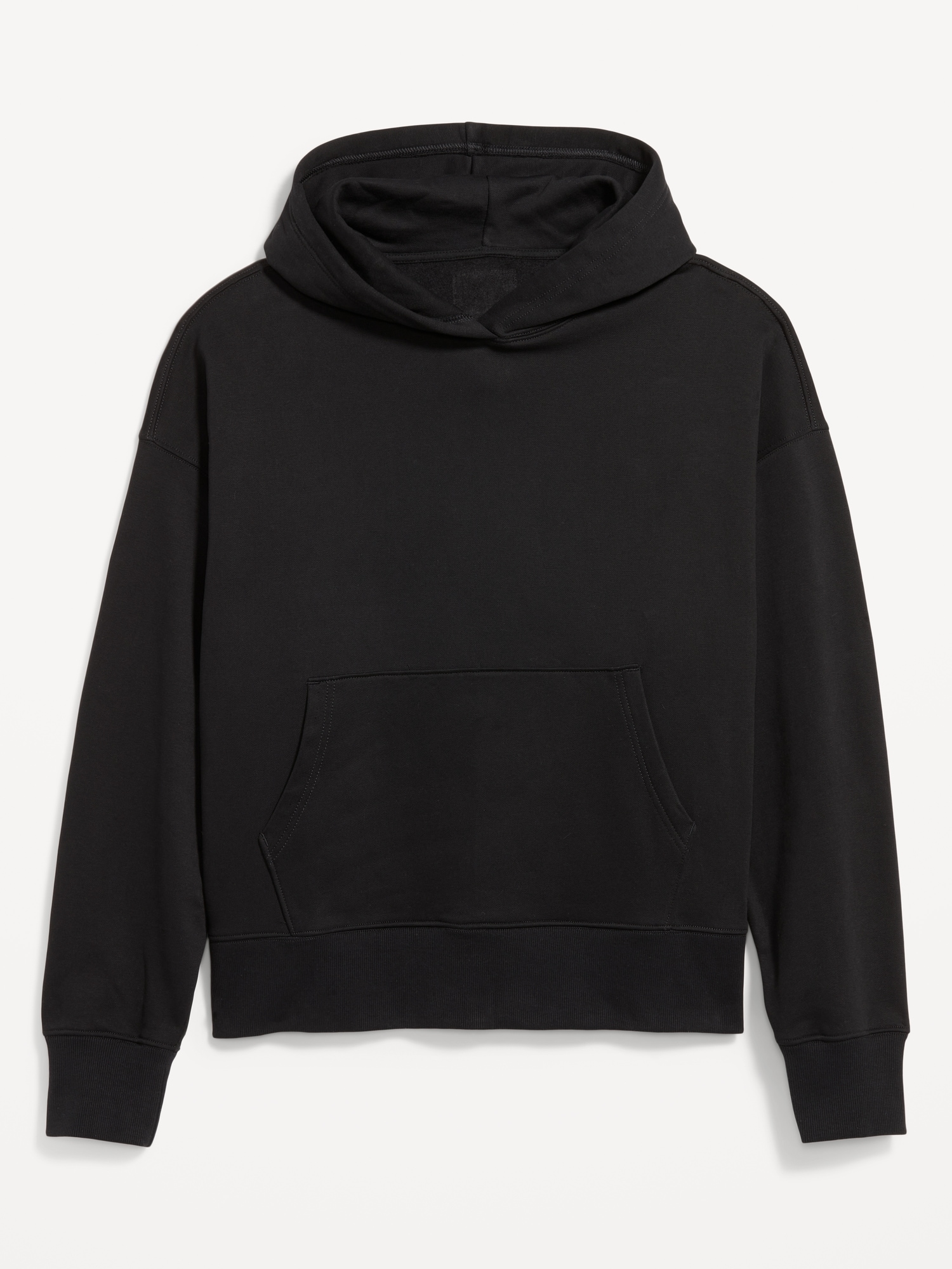 Oversized Cropped Hoodie: built-in hood, long sleeves, kangaroo pocket, rib-knit trim, pullover style, #665120