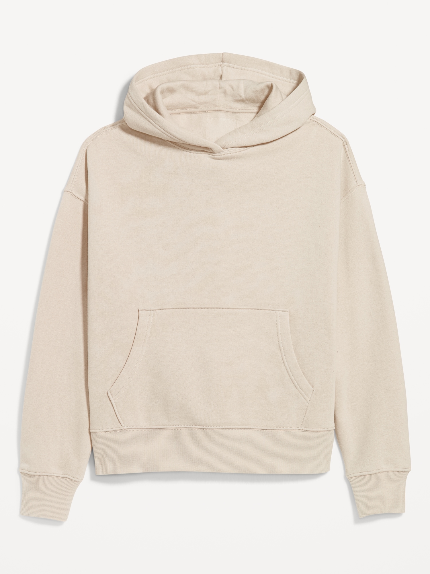 Oversized Cropped Hoodie: built-in hood, long sleeves, kangaroo pocket, rib-knit trim, pullover style, #665120