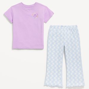 Oversized Graphic T-Shirt and Ribbed Flare Leggings Set for Toddler Girls: crew neck, short sleeves, graphic at front, coordinating leggings, elasticized waistband, lettuce edge hem, #762120
