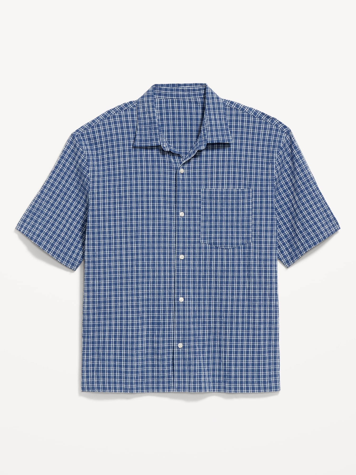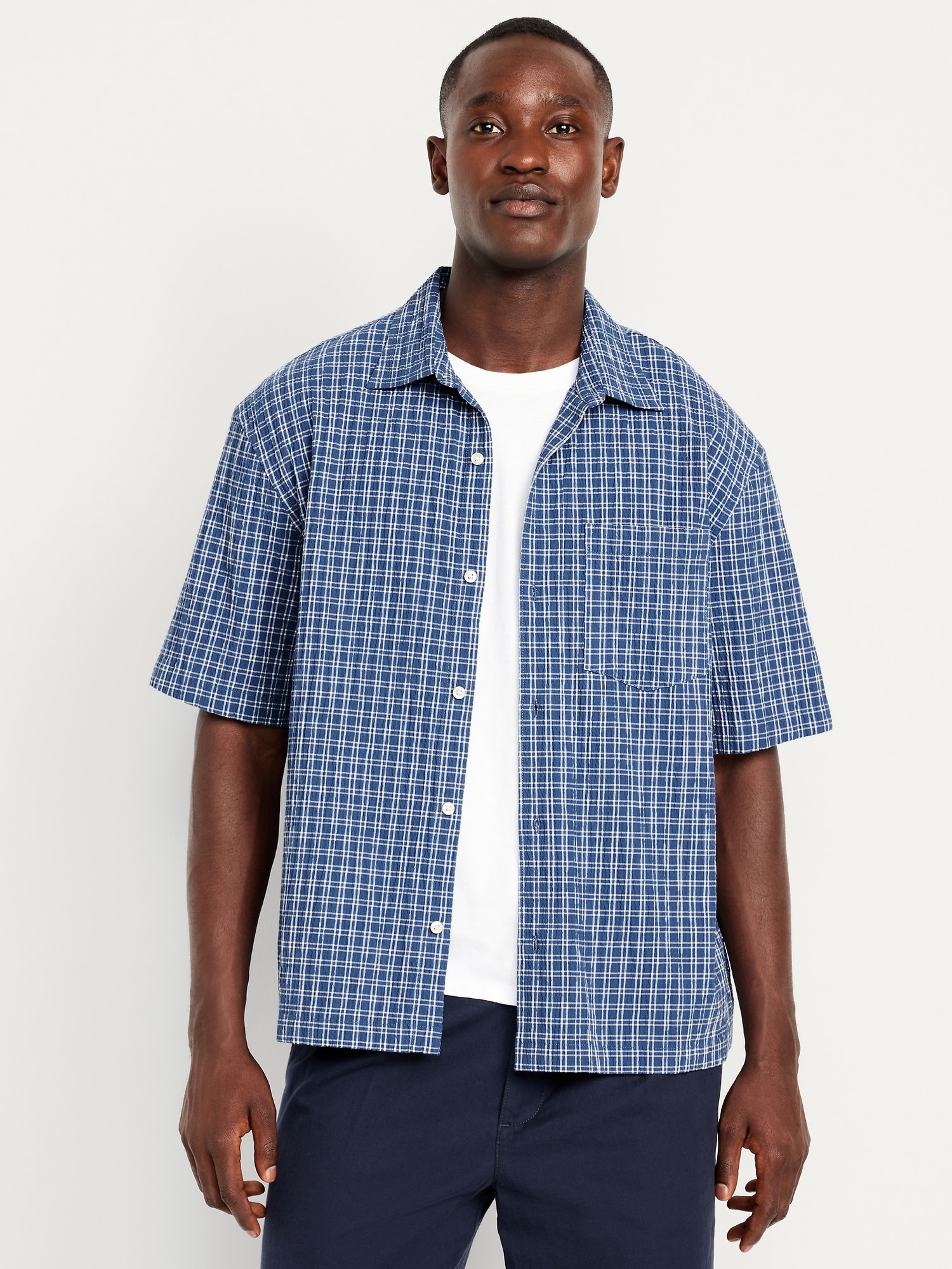 Oversized Heavyweight Shirt: spread collar, short sleeves, full-button front, patch chest pocket, #762362