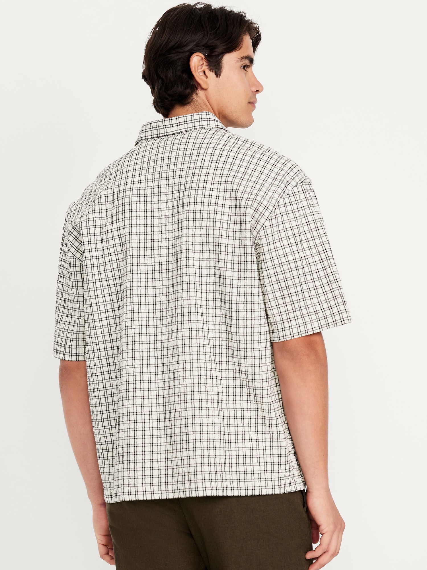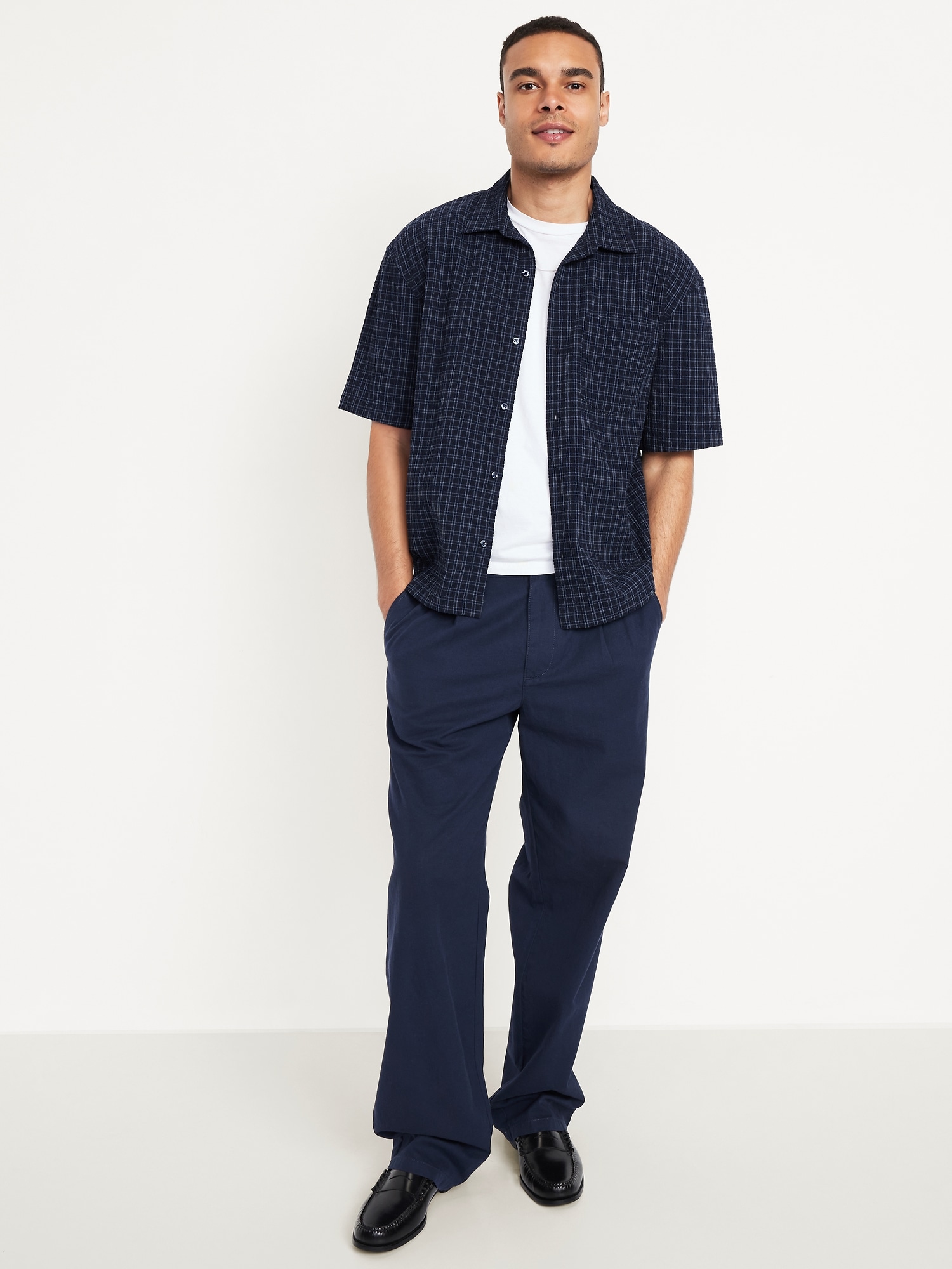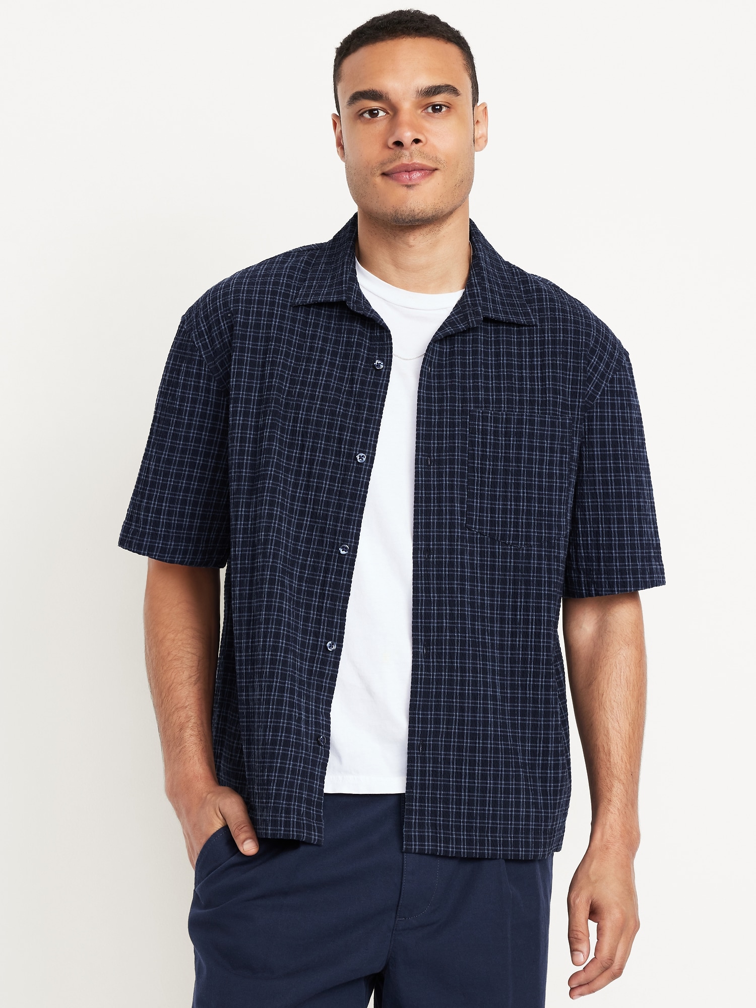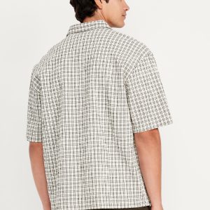Oversized Heavyweight Shirt: spread collar, short sleeves, full-button front, patch chest pocket, #762362