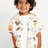 Oversized Logo-Graphic Collared Sweatshirt for Toddler Boys: pointed collar, long sleeves, three-button placket, small-scale logo graphic at chest, #787811