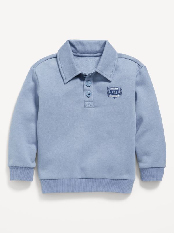 Oversized Logo-Graphic Collared Sweatshirt for Toddler Boys: pointed collar, long sleeves, three-button placket, small-scale logo graphic at chest, #787811