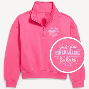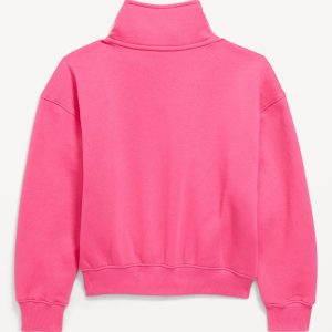 Oversized Quarter-Zip Sweatshirt for Girls: spread collar, long sleeves, drop shoulders, quarter zip front, banded hem, all-over pattern or graphic, #759538