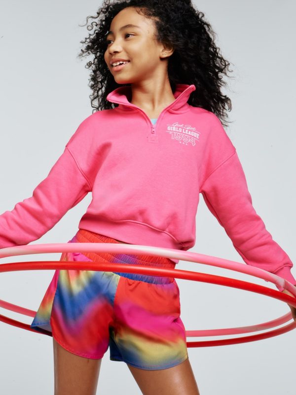 Oversized Quarter-Zip Sweatshirt for Girls: spread collar, long sleeves, drop shoulders, quarter zip front, banded hem, all-over pattern or graphic, #759538