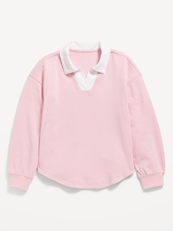 Oversized Rugby Polo Shirt for Girls: pointed collar, v neck, long wide sleeves, drop shoulders, rounded hem, #789714
