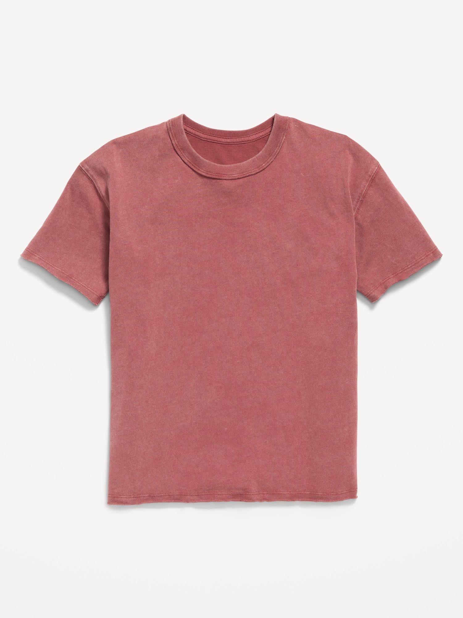 Oversized Short-Sleeve Raw-Edge T-Shirt for Girls: crew neck, short sleeves, drop shoulders, raw-edge hem, #807604