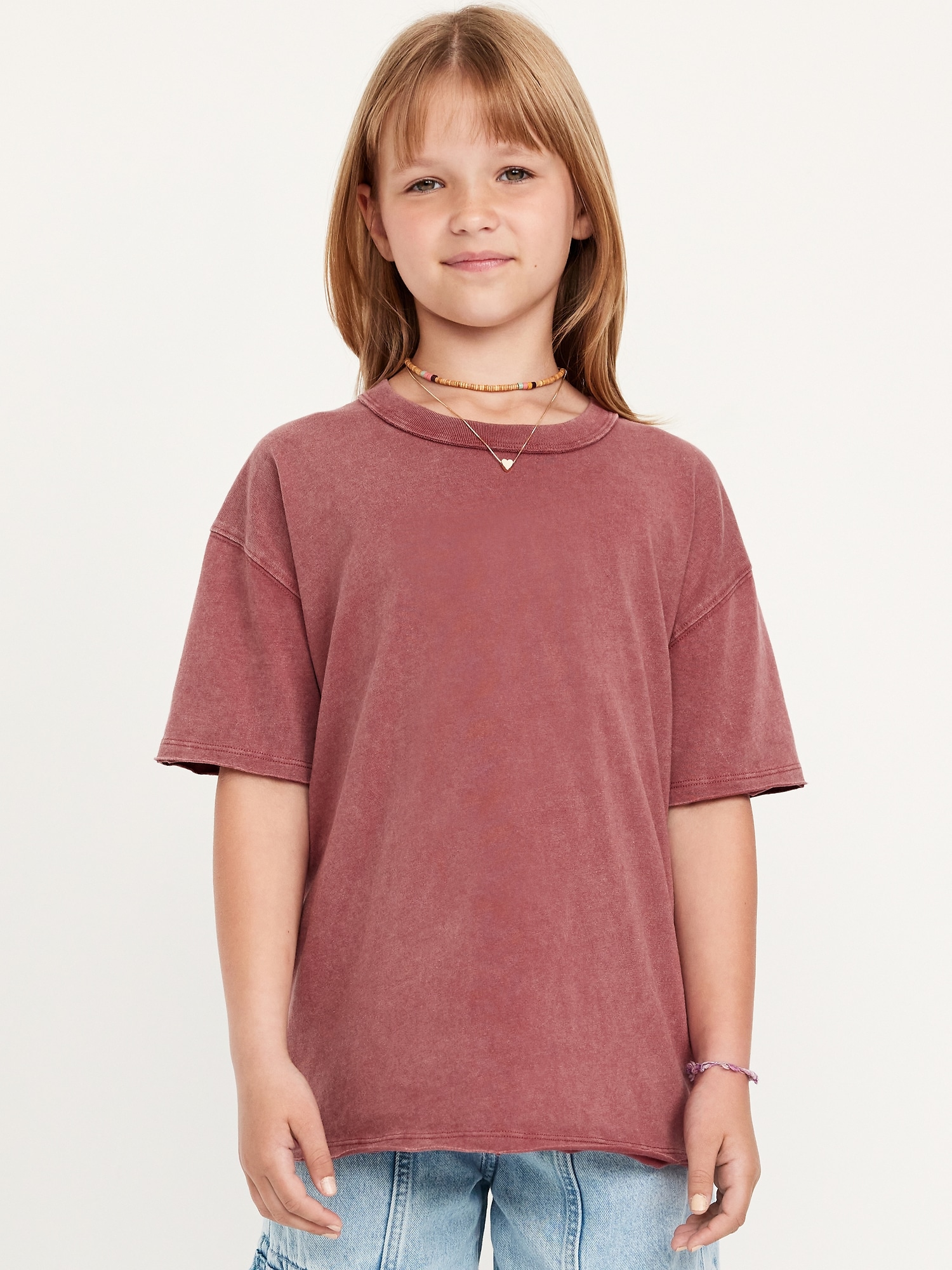 Oversized Short-Sleeve Raw-Edge T-Shirt for Girls
