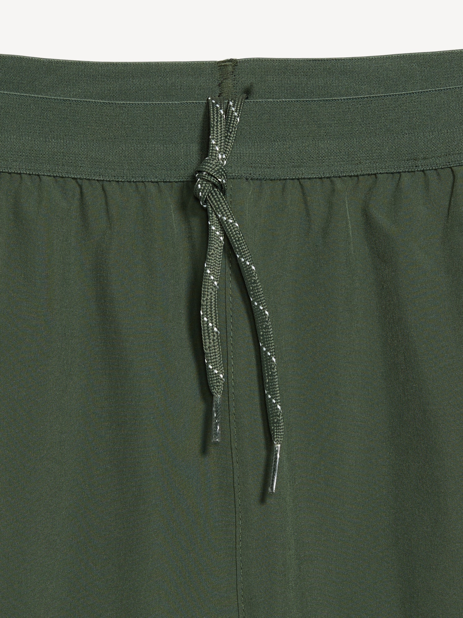Performance Vent Run Shorts — 7-inch inseam: elastic-drawstring waistband, hidden back pocket at waist, diagonal hip pockets, vented sides, built-in briefs, breathable, quick dry, four-way stretch, #693436