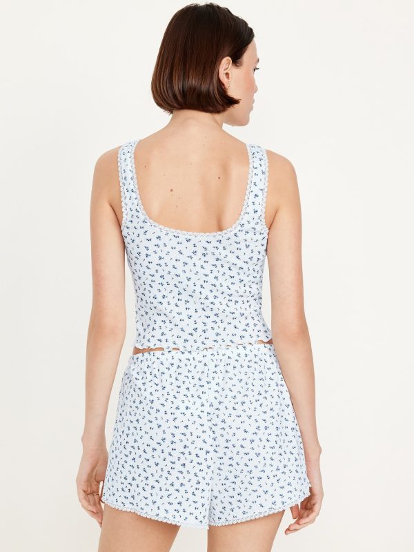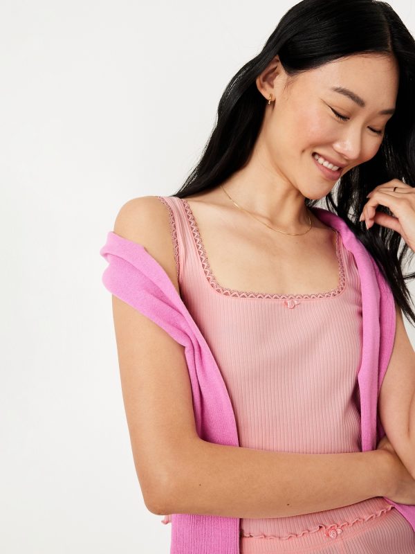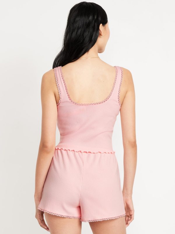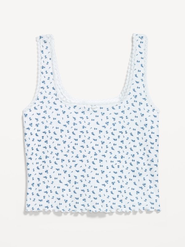 Pointelle Cropped Pajama Tank Top: ruffle-trim scoop neck, wide straps, lettuce-edge hem, #707474