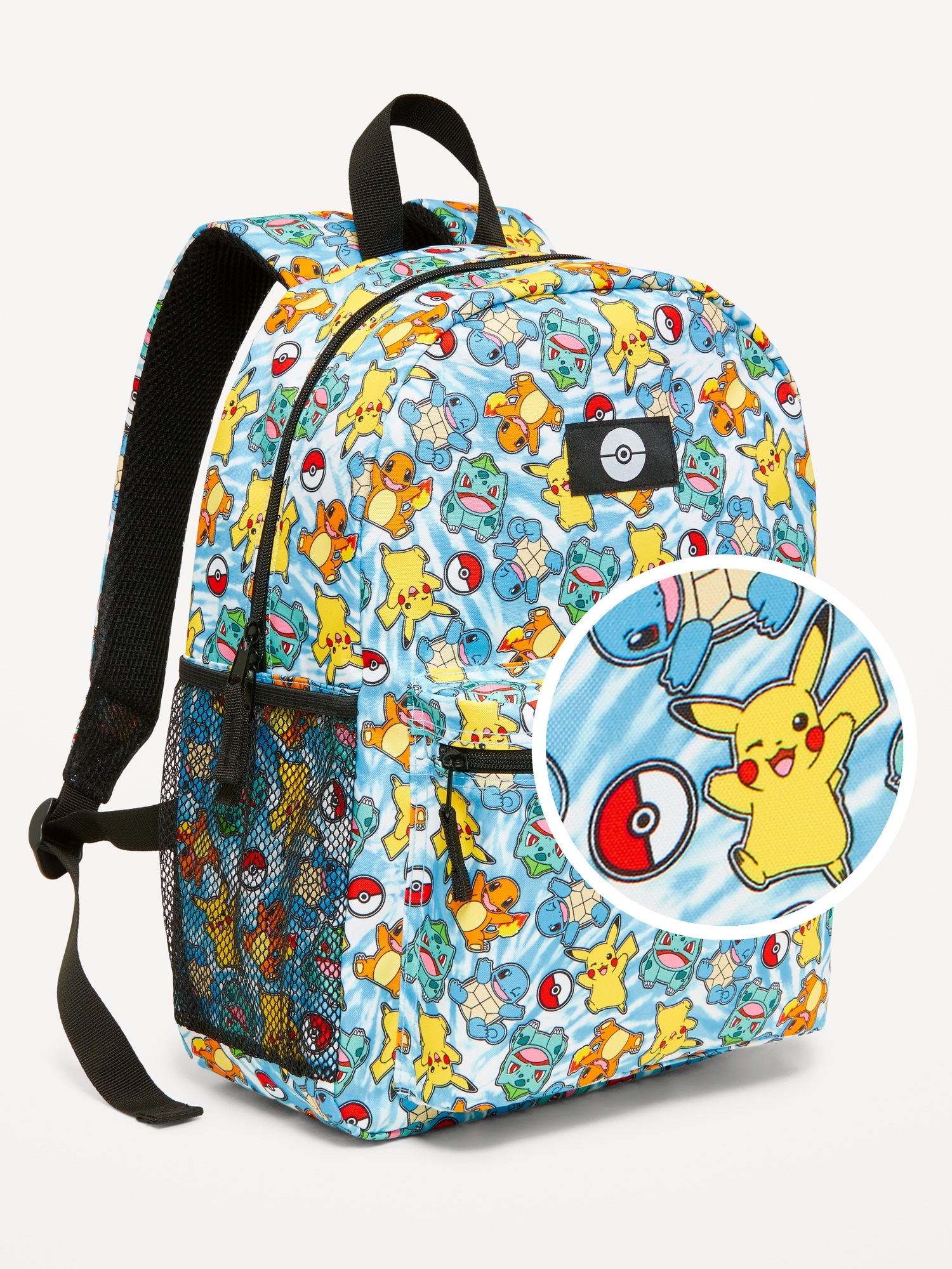 Pokémon™ Canvas Backpack for Kids: The pack that’s got their literal back.zip-top closure, top handle, padded shoulder straps with adjustable buckles, padded mesh back for added comfort and breathability, exterior zippered pouch compartment, durable stretchy mesh side pouch, smooth interior with interior pocket, © 2025 The Pokémon Company International. ™, ® Nintendo., #763208