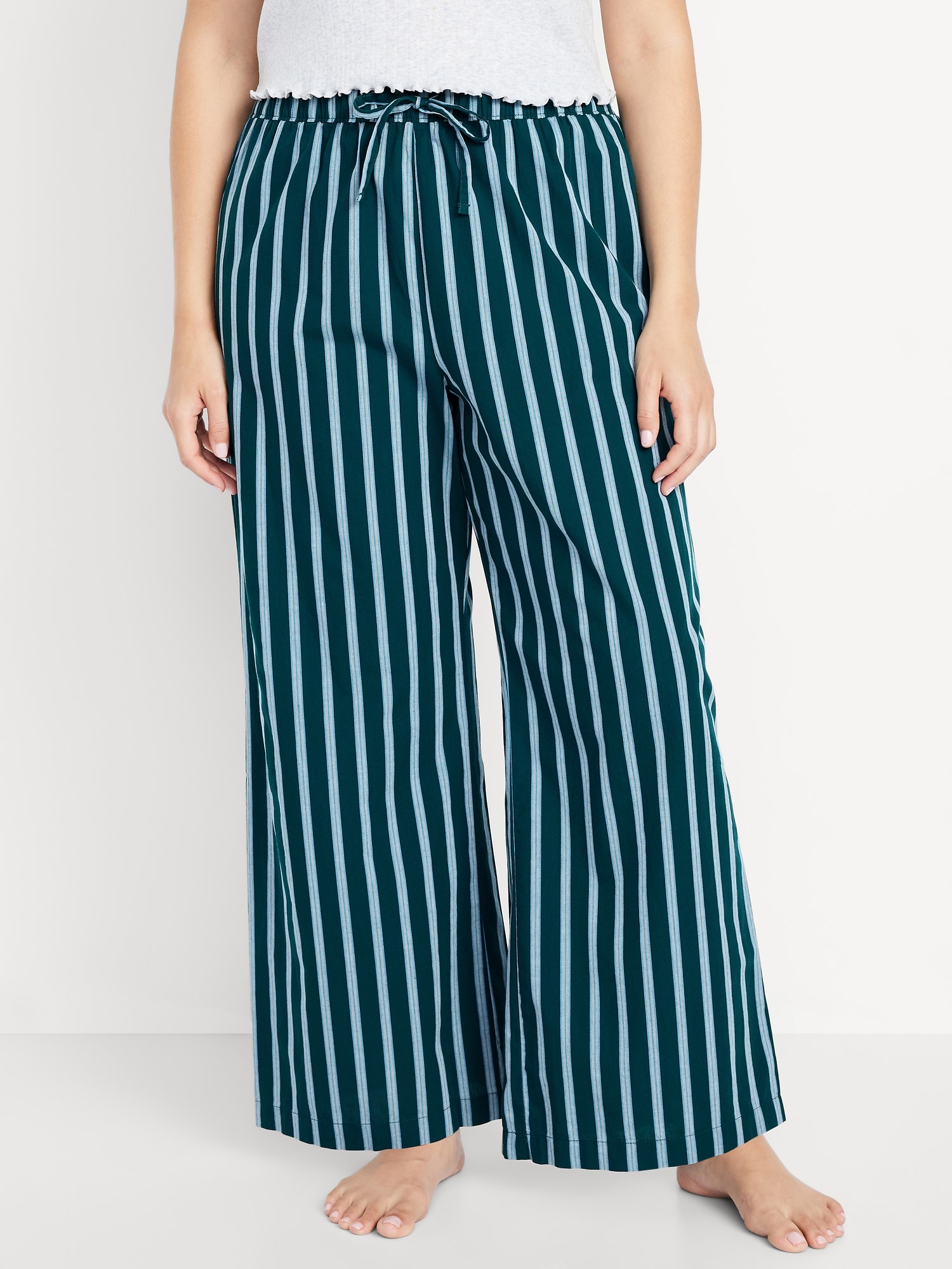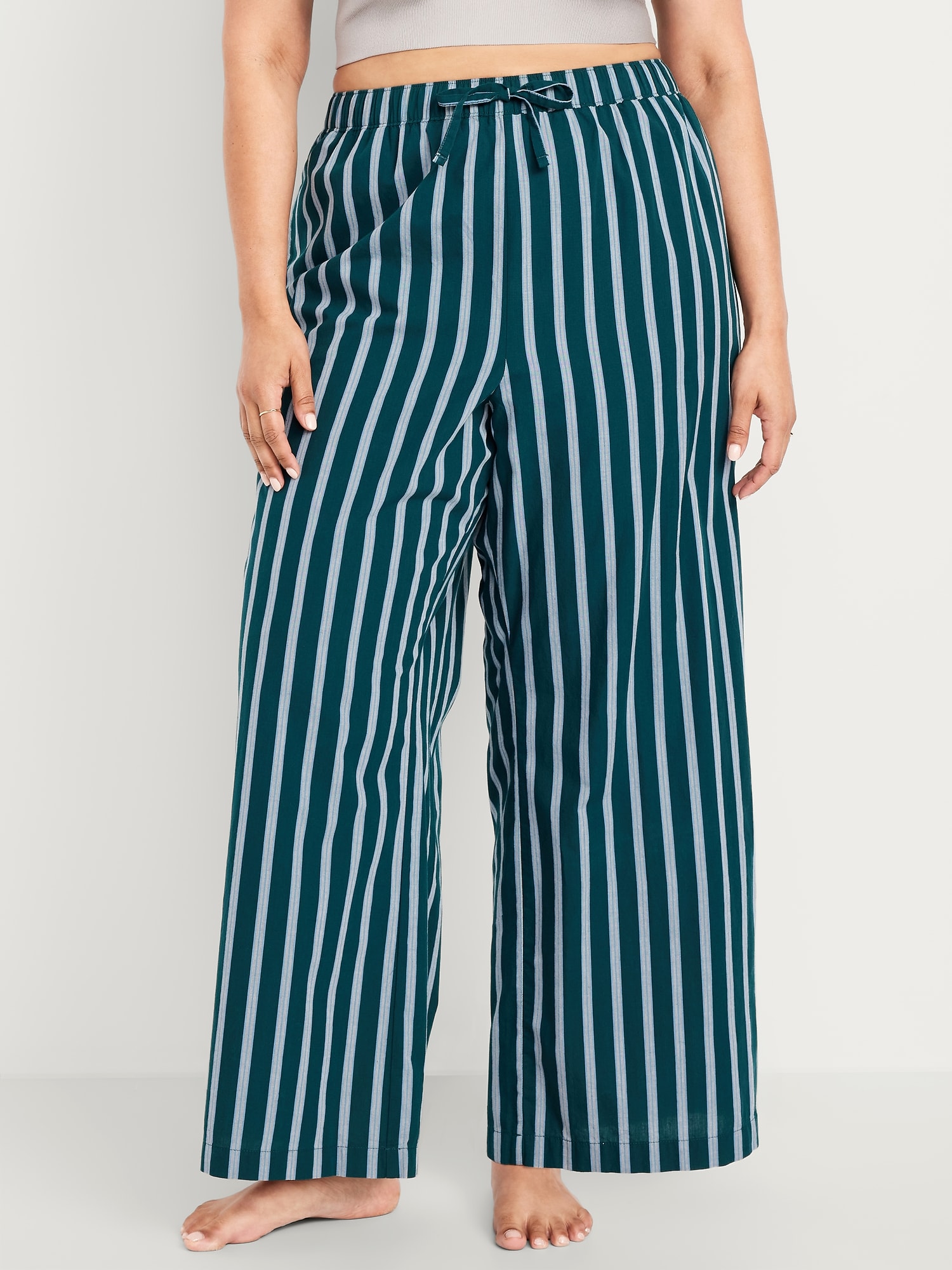 Poplin Wide-Leg Pajama Pants: Crisp, breathable cotton that’s classic for a reason.elastic-drawstring waistband, on-seam side pockets, plaid print, #798467