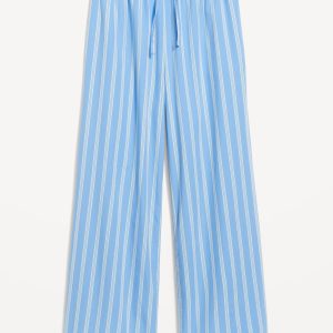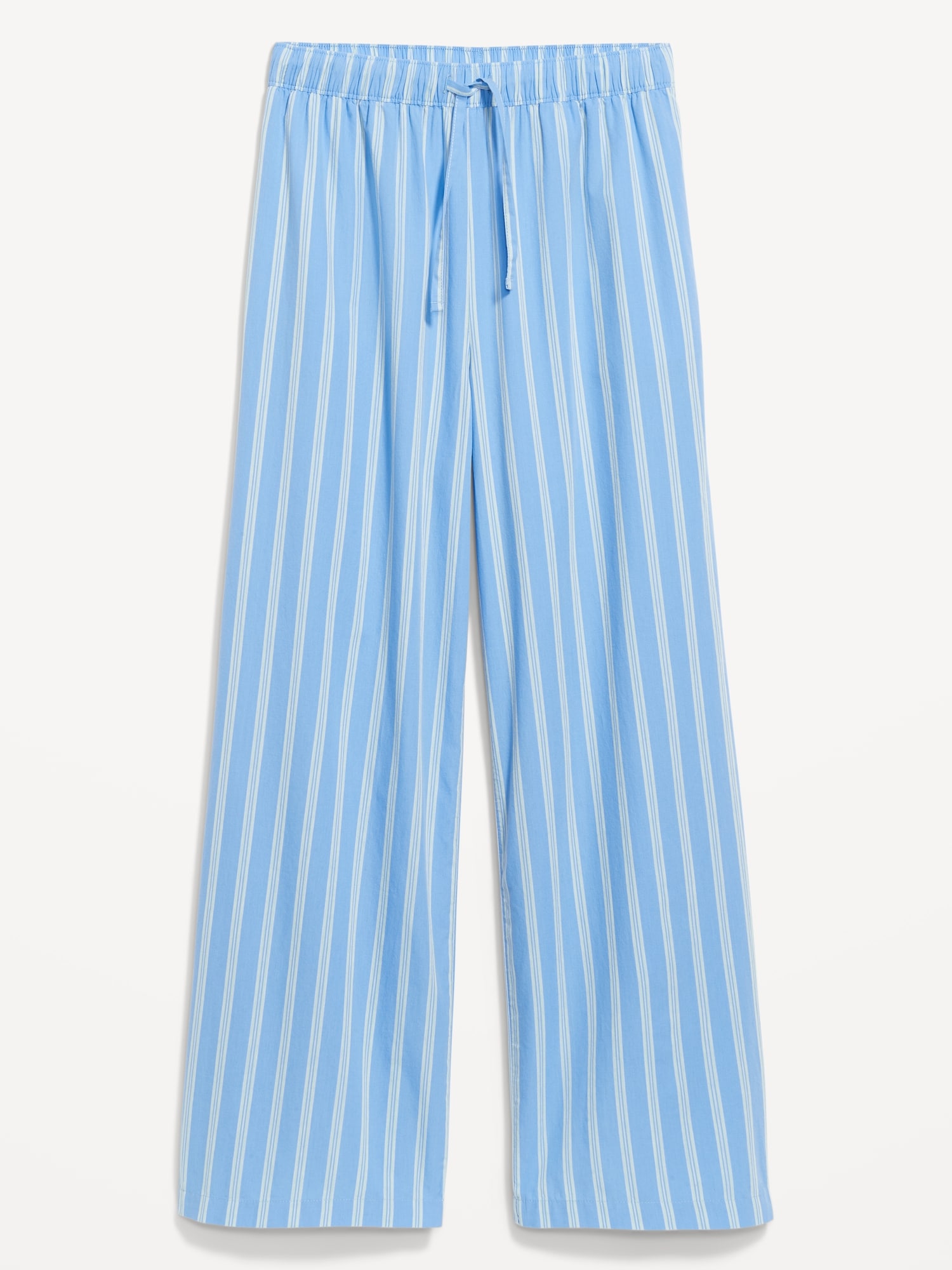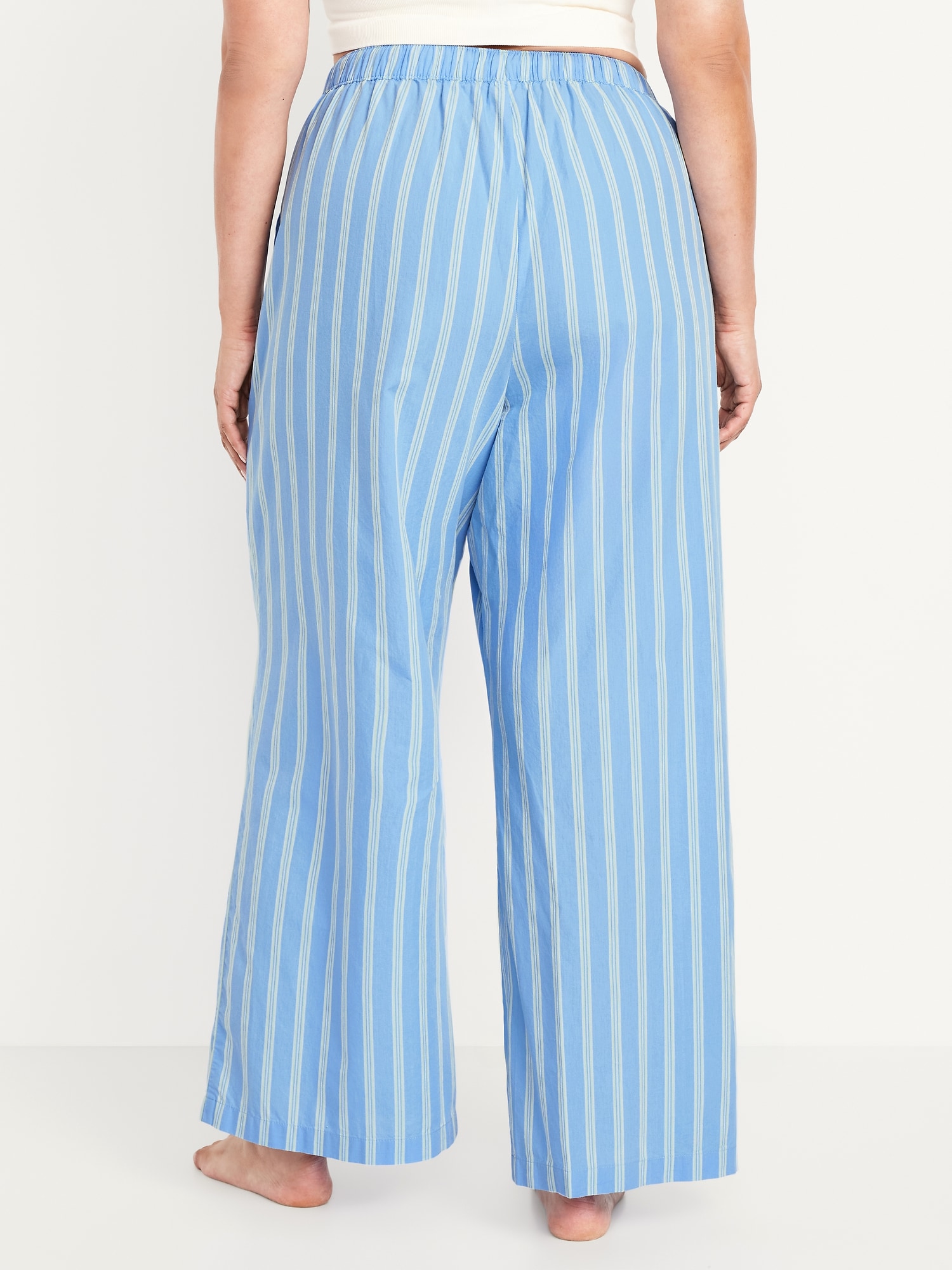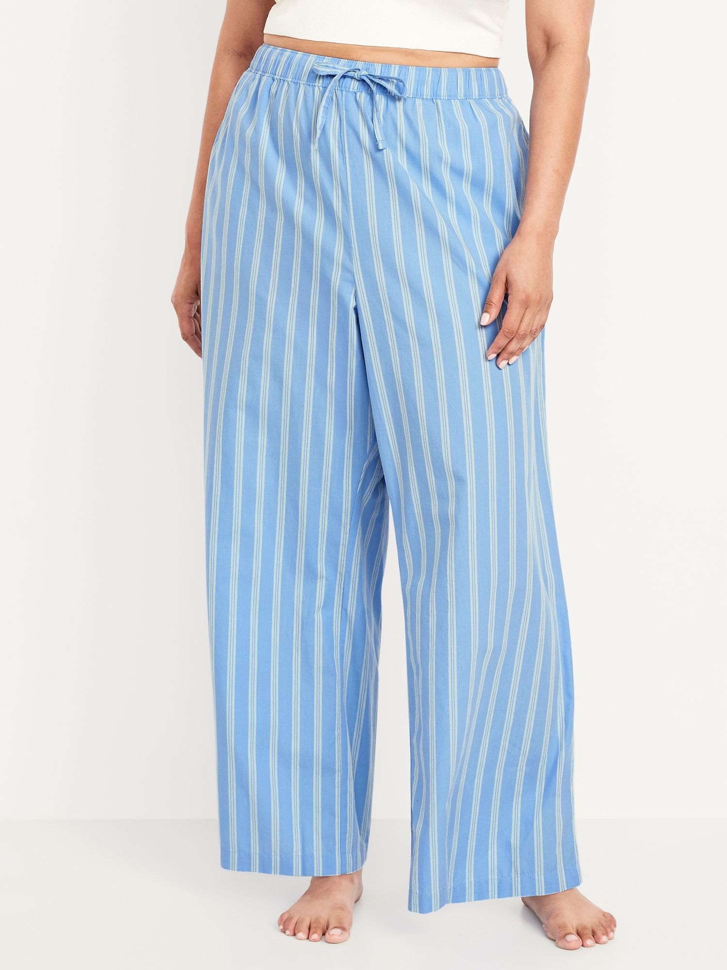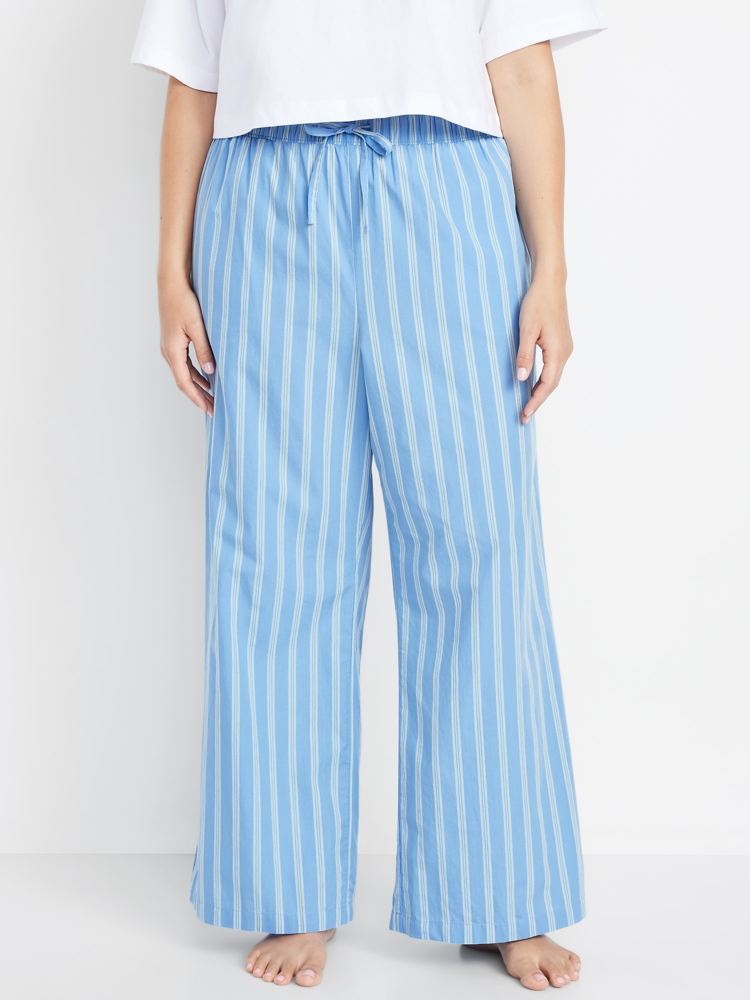Poplin Wide-Leg Pajama Pants: Crisp, breathable cotton that’s classic for a reason.elastic-drawstring waistband, on-seam side pockets, plaid print, #798467
