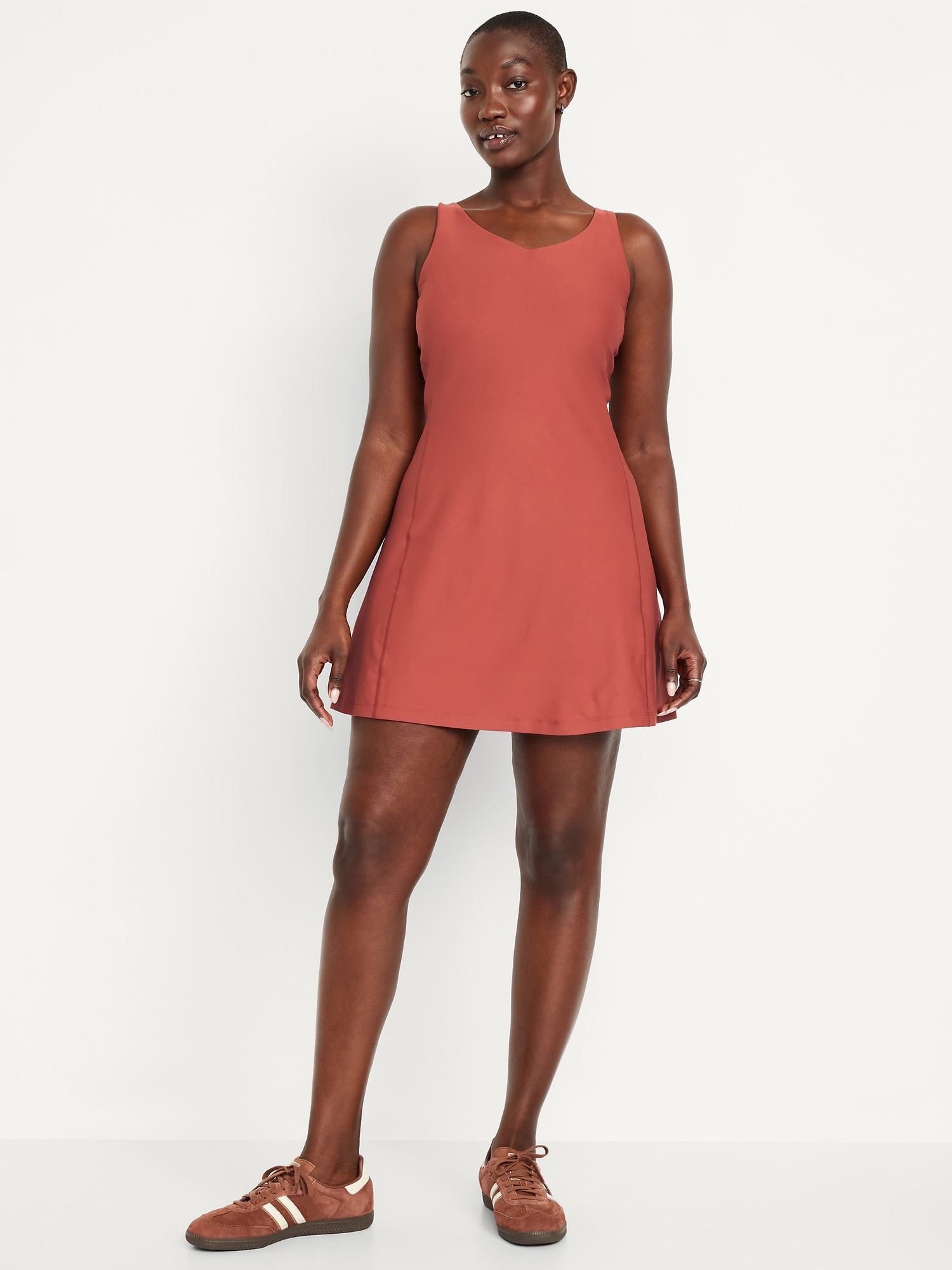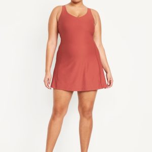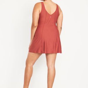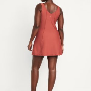 PowerSoft Athletic Dress: Featuring PowerSoft. Light compression meets a peachy-smooth, sweat-wicking fabric.v-neck, wide straps, shelf bra, go-dry wicks moisture, breathable, mini length, #662642