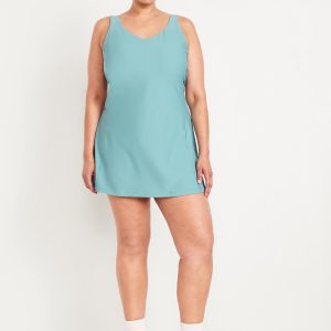 PowerSoft Athletic Dress: Featuring PowerSoft. Light compression meets a peachy-smooth, sweat-wicking fabric.v-neck, wide straps, shelf bra, go-dry wicks moisture, breathable, mini length, #662642
