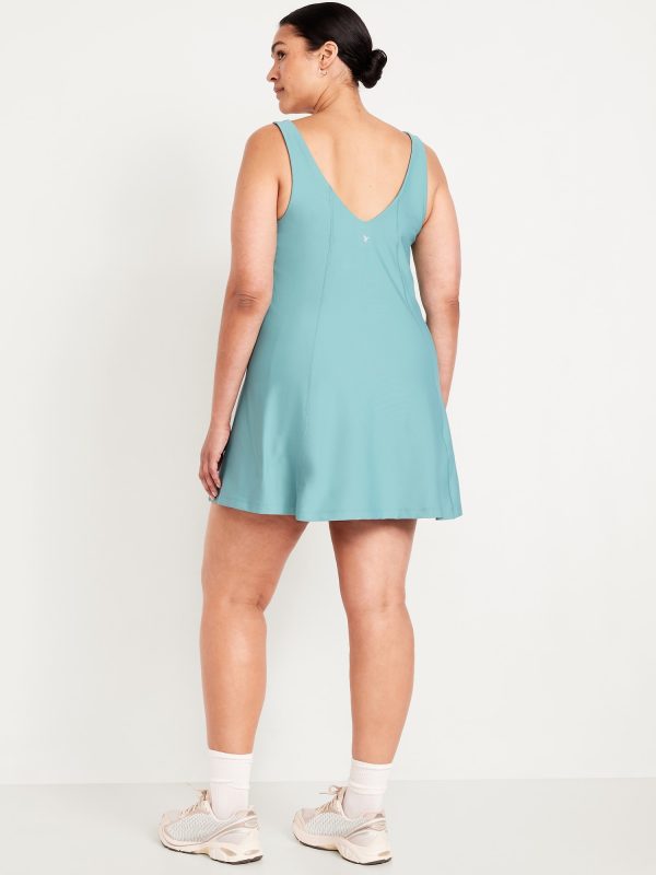 PowerSoft Athletic Dress: Featuring PowerSoft. Light compression meets a peachy-smooth, sweat-wicking fabric.v-neck, wide straps, shelf bra, go-dry wicks moisture, breathable, mini length, #662642