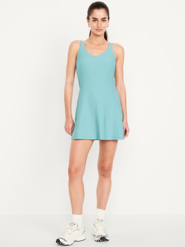 PowerSoft Athletic Dress: Featuring PowerSoft. Light compression meets a peachy-smooth, sweat-wicking fabric.v-neck, wide straps, shelf bra, go-dry wicks moisture, breathable, mini length, #662642