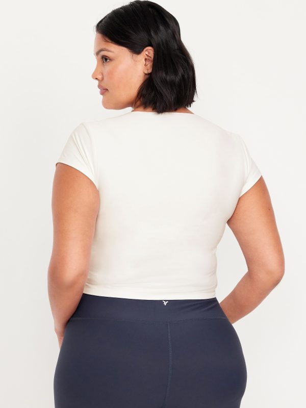 PowerSoft Support Crop Top: Featuring PowerSoft. Light compression meets a peachy-smooth, sweat-wicking fabric.crew neck, cap sleeves, removable pads, go-dry wicks moisture, #484464