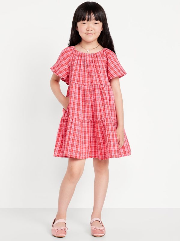 Printed Flutter-Sleeve Double-Weave Tiered Swing Dress for Girls