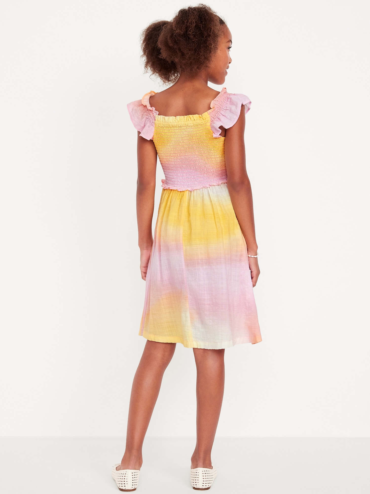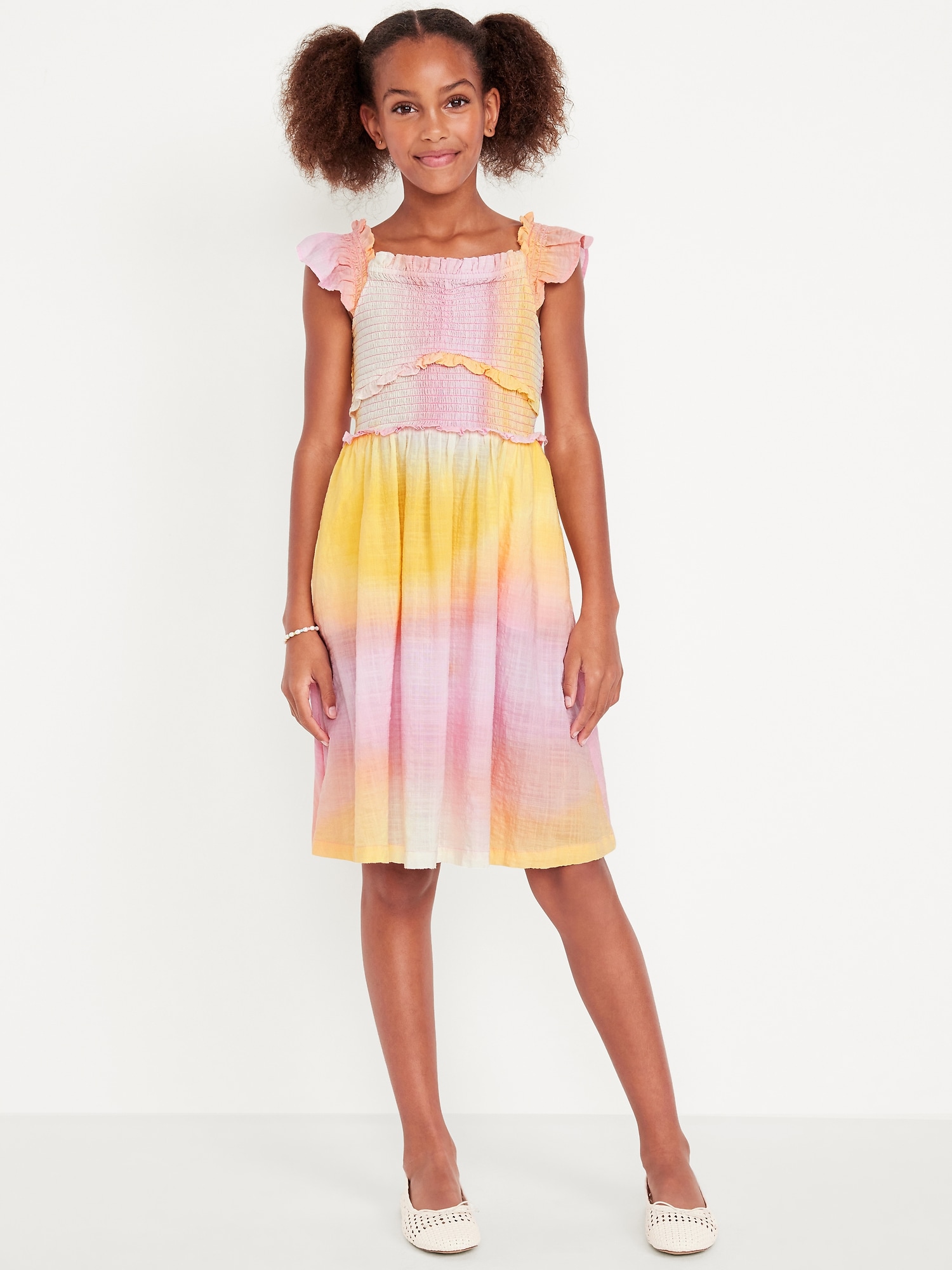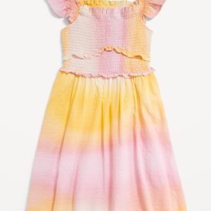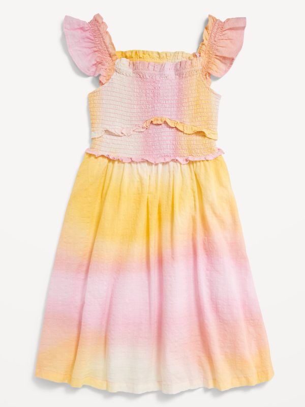 Printed Flutter-Sleeve Smocked Fit and Flare Dress for Girls