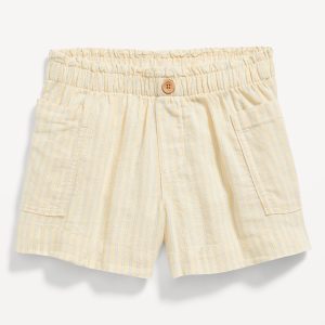 Printed Linen-Blend Utility Shorts for Girls: elasticized waistband, decorative button front, utility patch pockets at each side, all-over print, #767129