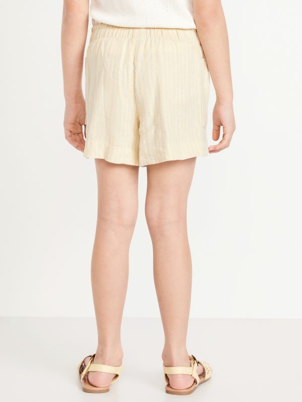 Printed Linen-Blend Utility Shorts for Girls: elasticized waistband, decorative button front, utility patch pockets at each side, all-over print, #767129