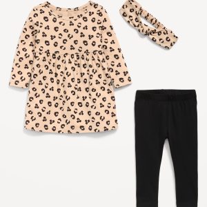 Printed Long-Sleeve Dress, Leggings and Headband for Baby