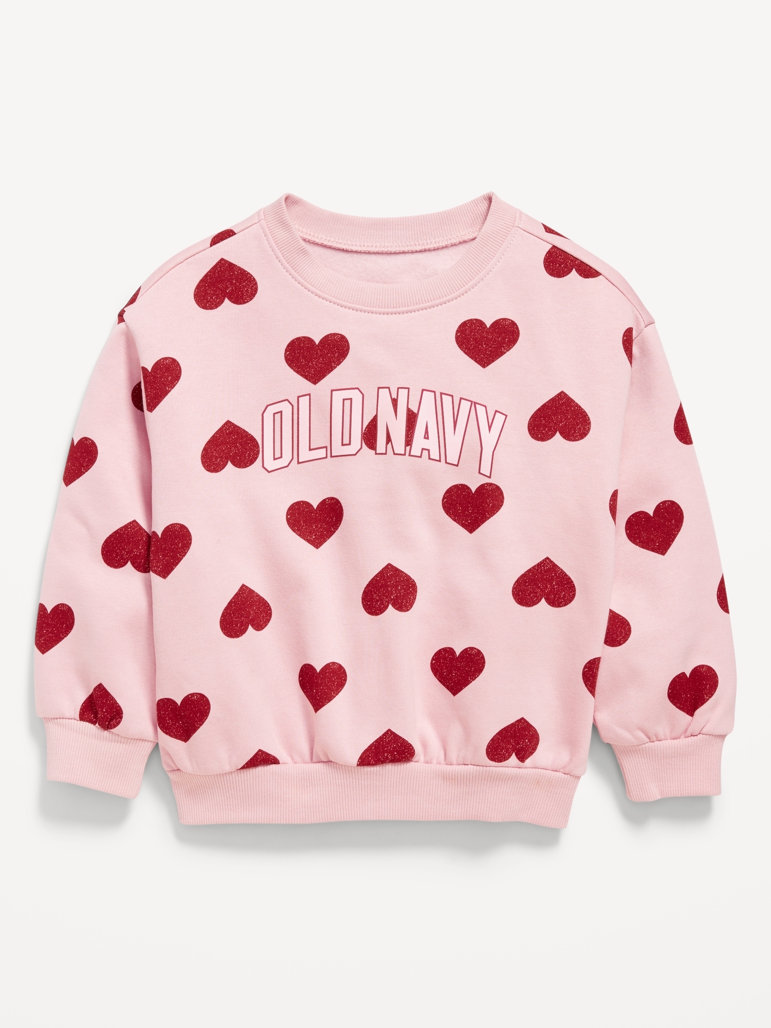 Printed Long-Sleeve Logo-Graphic Sweatshirt for Toddler Girls: crew neck, long sleeves, drop shoulders, logo graphic, all-over print, available exclusively online and at old navy outlet stores., #800827