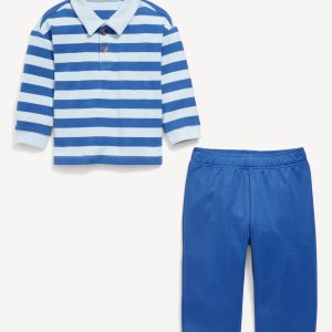 Printed Long-Sleeve Polo Shirt and Pants Set for Baby