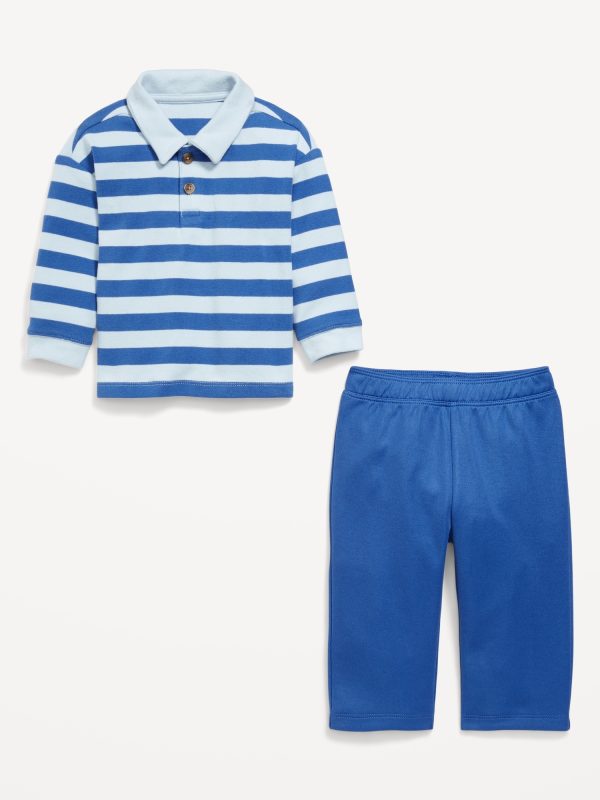 Printed Long-Sleeve Polo Shirt and Pants Set for Baby