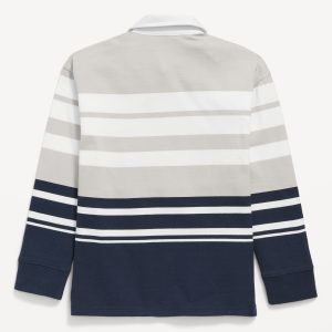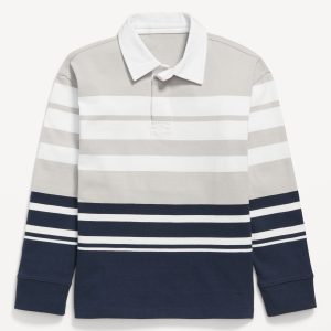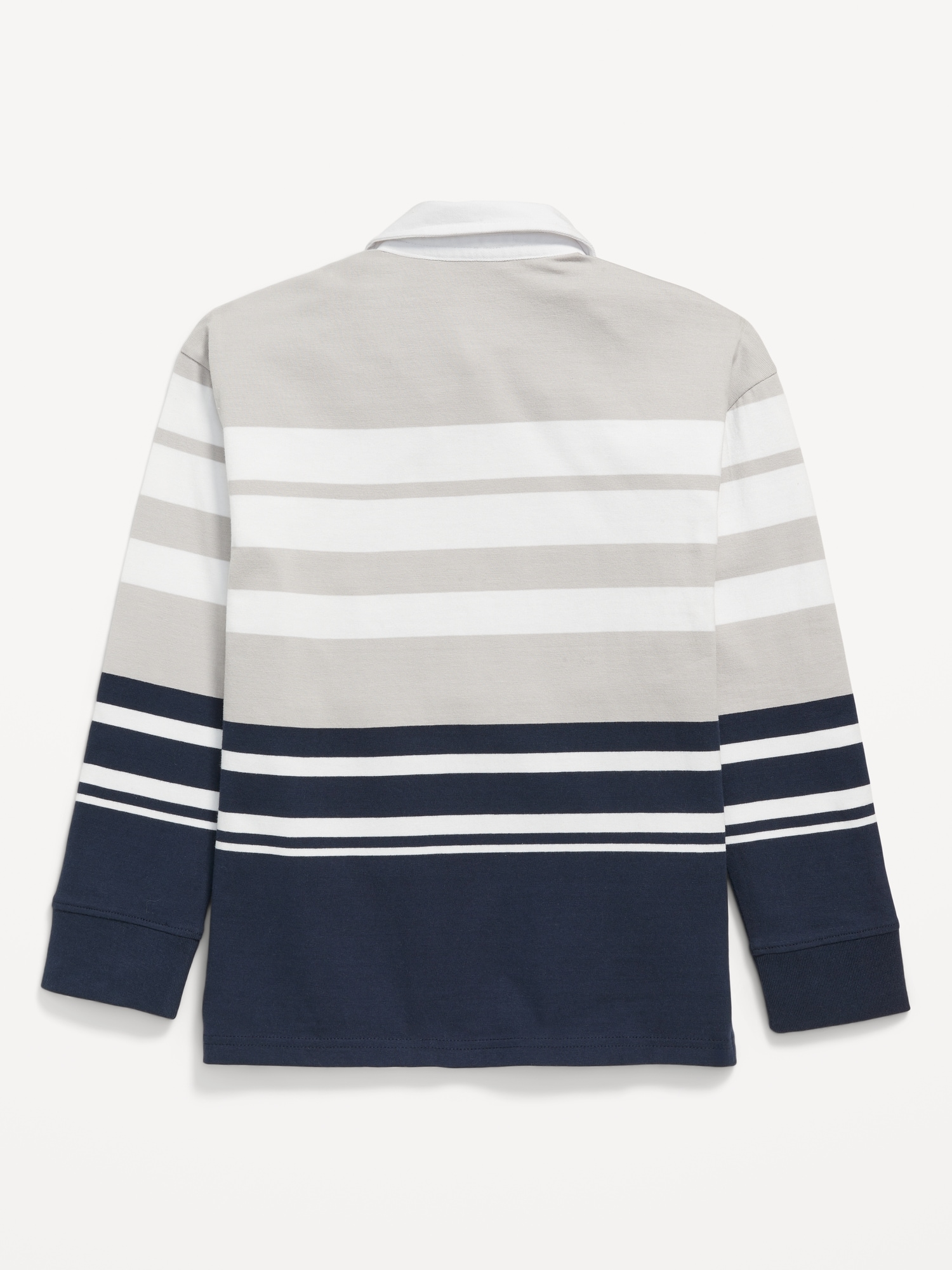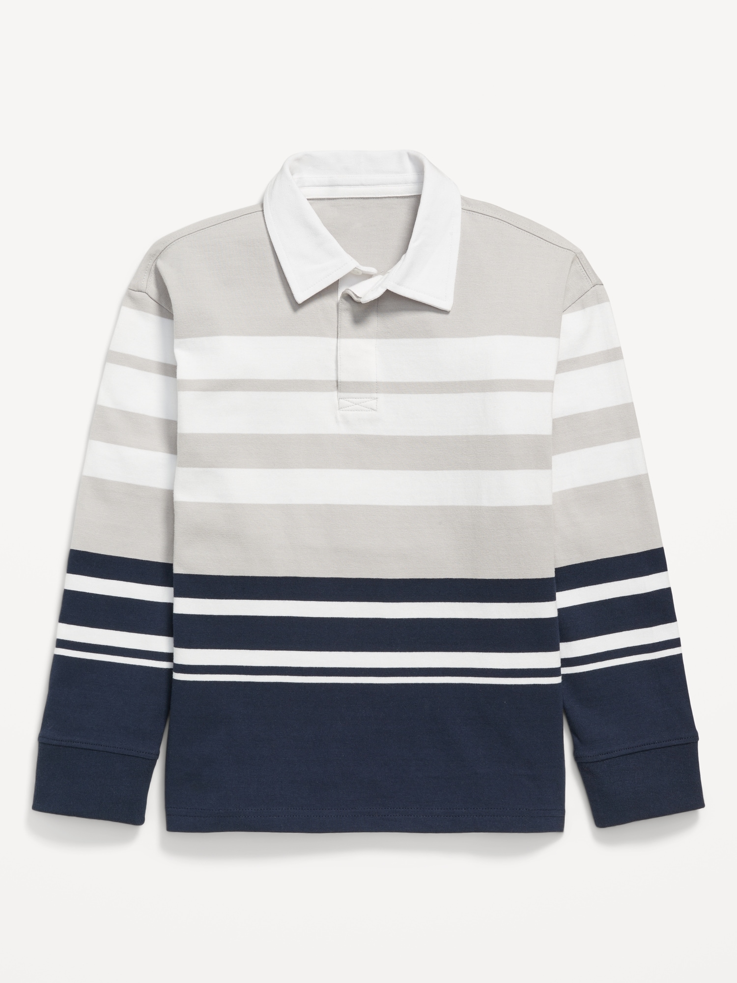 Printed Long-Sleeve Polo Shirt for Boys: pointed collar, long sleeves, drop shoulders, three-button placket, color block, #806315