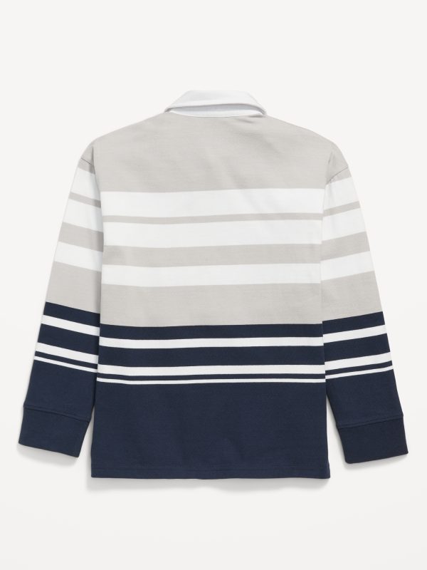 Printed Long-Sleeve Polo Shirt for Boys: pointed collar, long sleeves, drop shoulders, three-button placket, color block, #806315