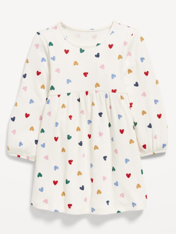 Printed Long-Sleeve Ribbed Dress for Toddler Girls: Mix Match Go Productscoop neck, long puffy sleeves, seamed waist, all-over print, #805579