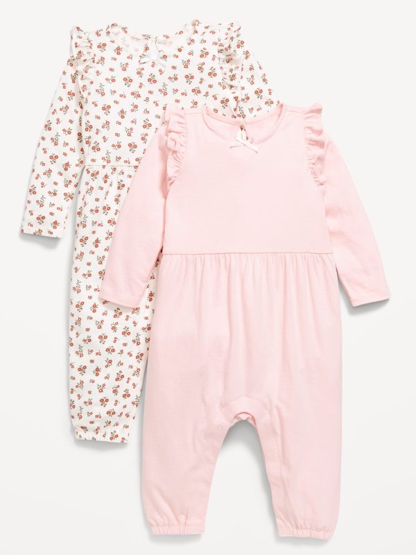 Printed Long-Sleeve Ruffle-Trim One-Piece 2-Pack for Baby