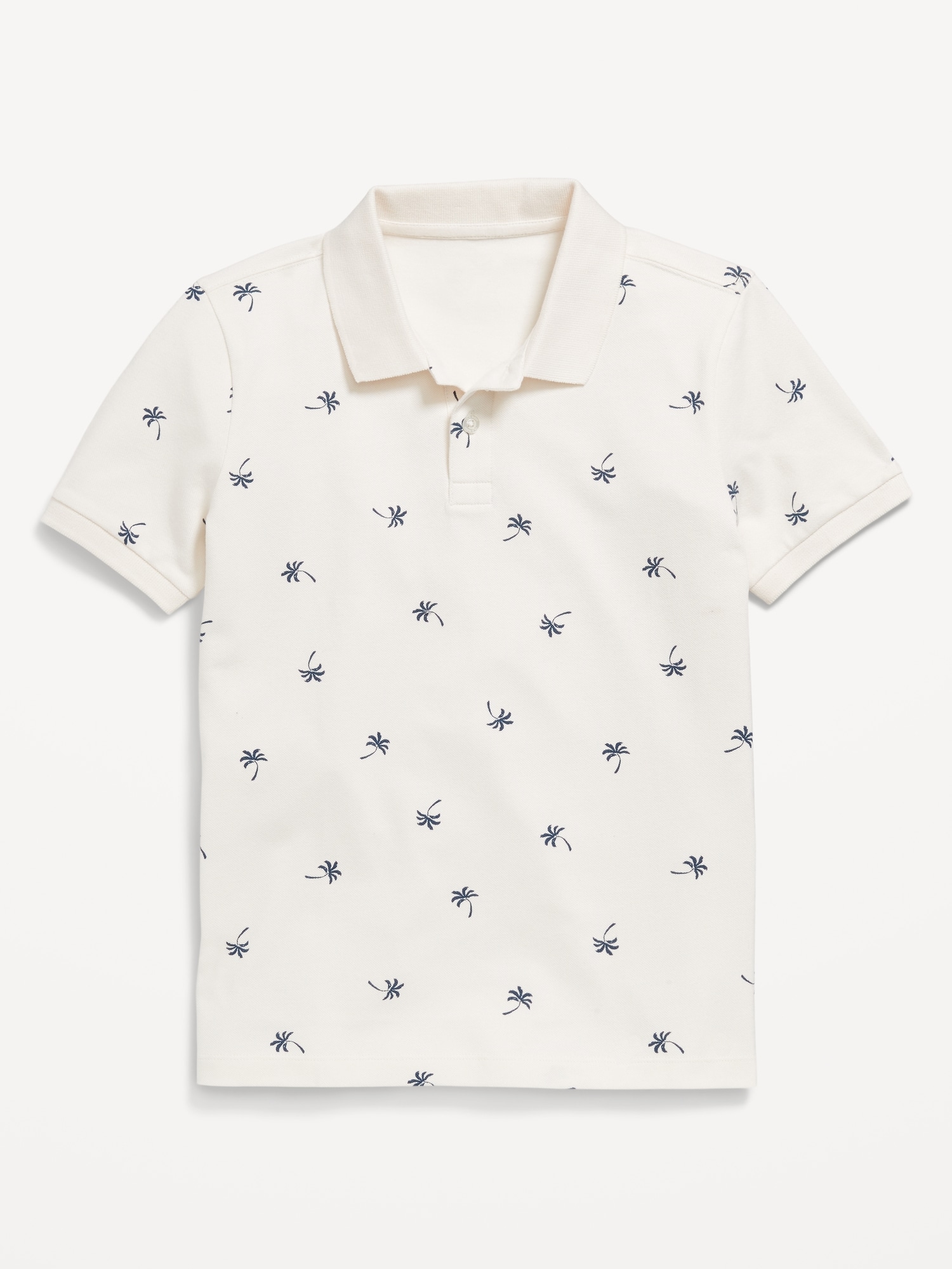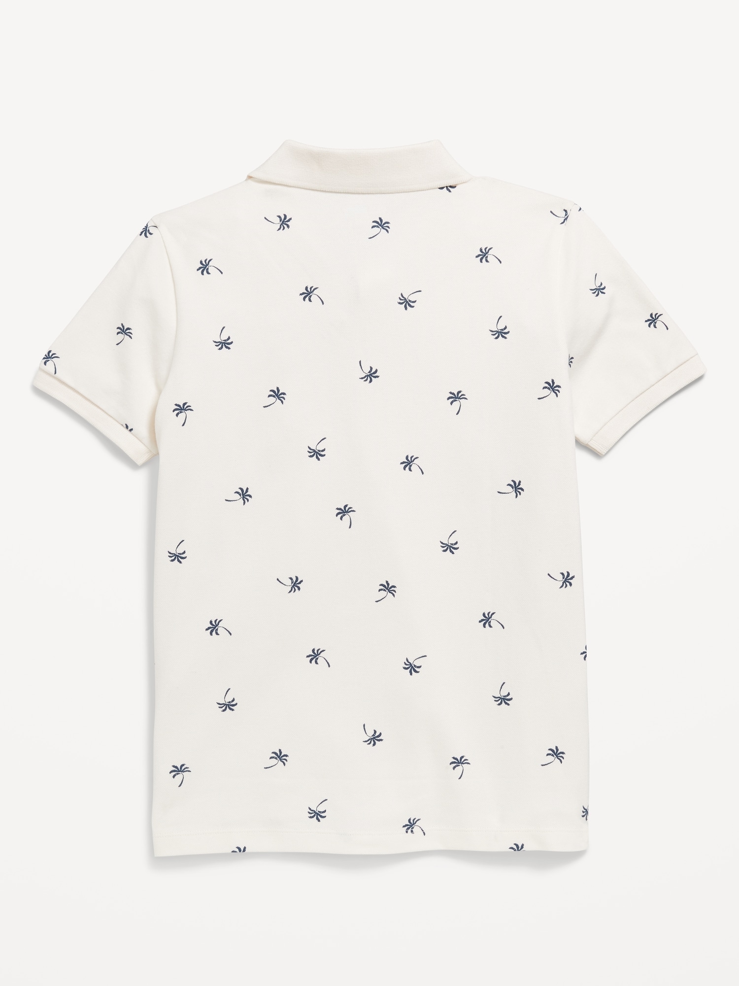 Printed Pique Polo Shirt for Boys: rib-knit collar, short sleeves, two-button placket, all-over print, #858468