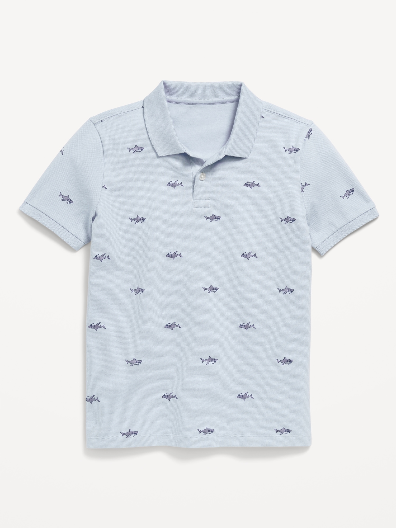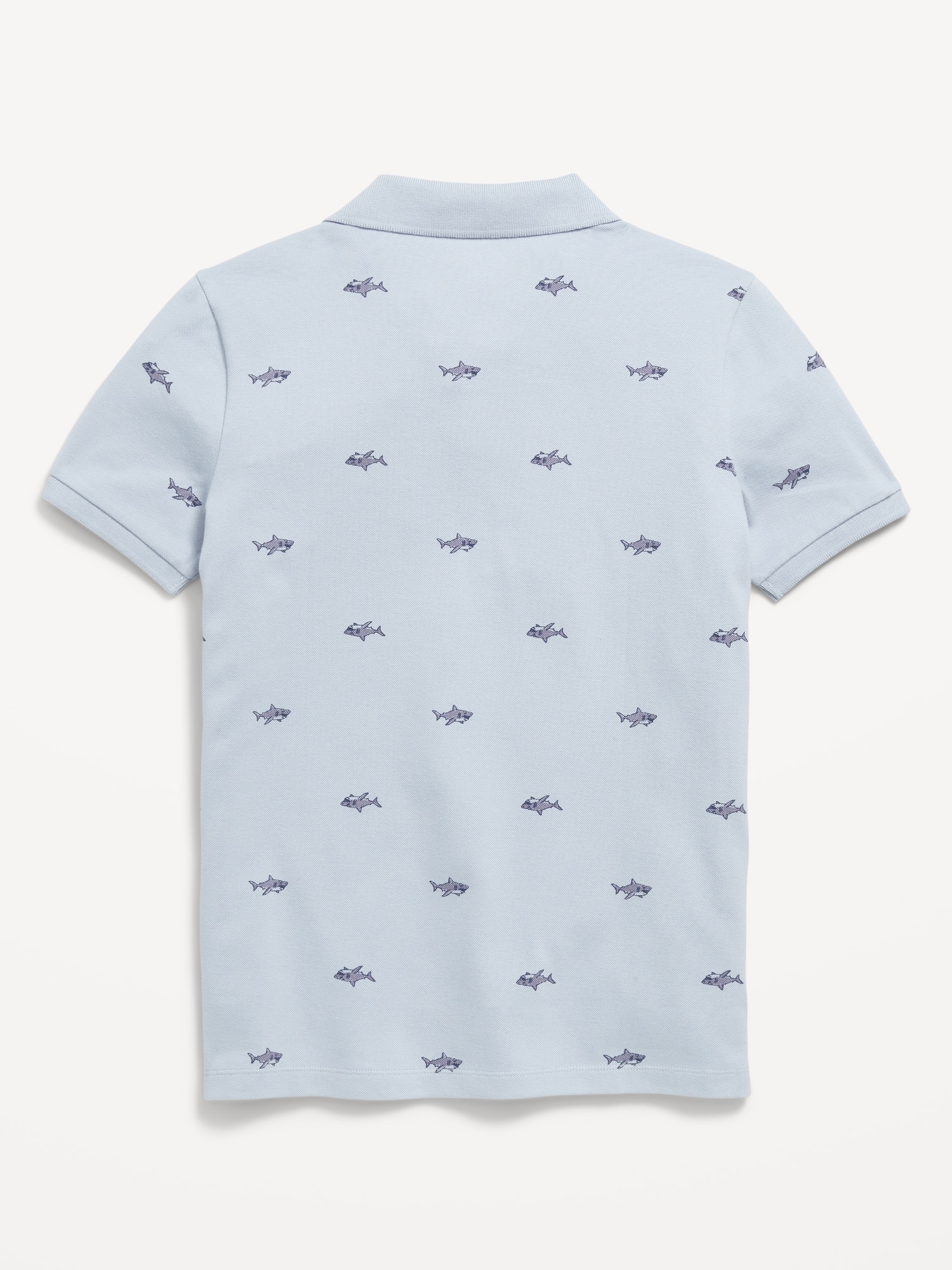 Printed Pique Polo Shirt for Boys: rib-knit collar, short sleeves, two-button placket, all-over print, #858468