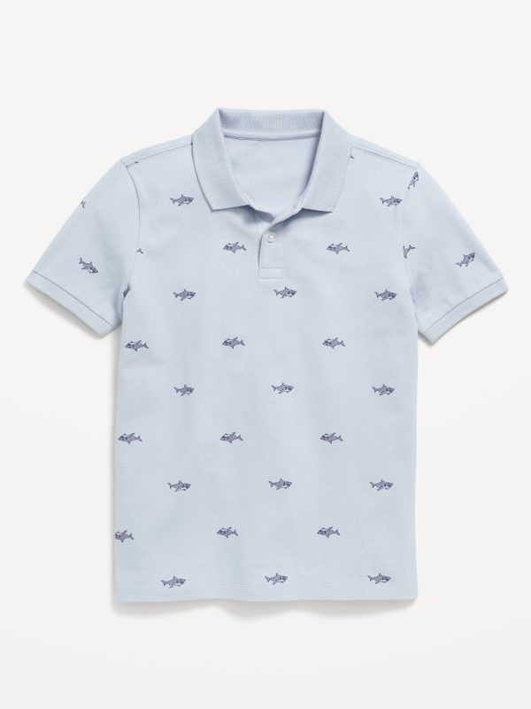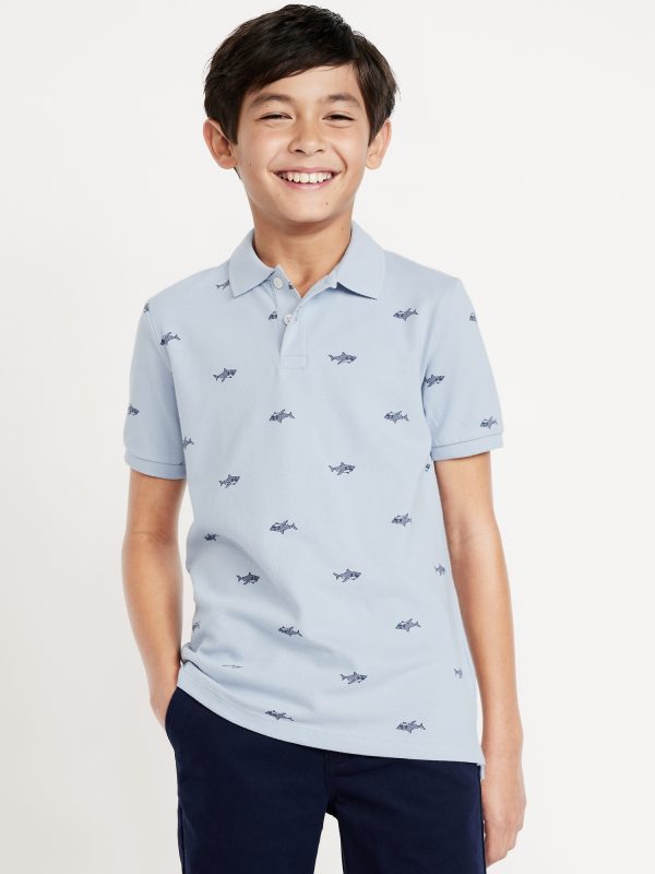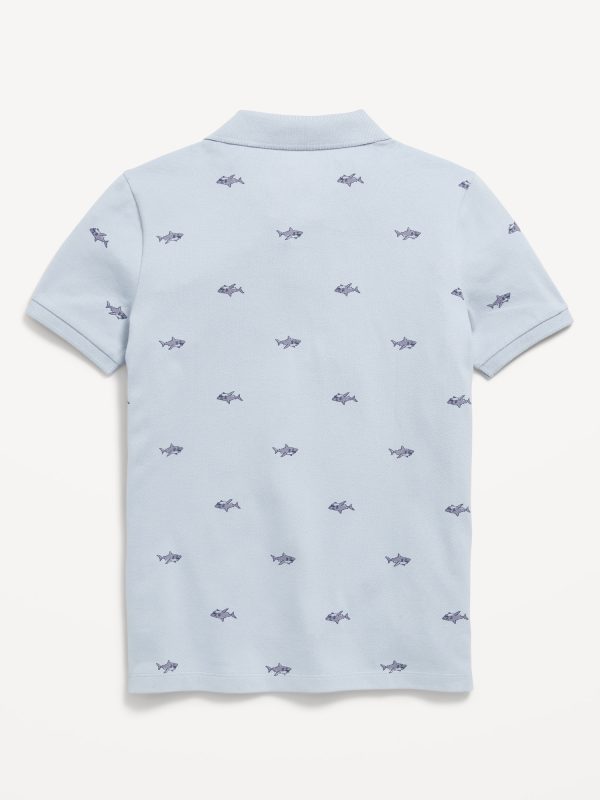 Printed Pique Polo Shirt for Boys: rib-knit collar, short sleeves, two-button placket, all-over print, #858468