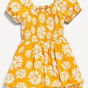 Printed Puff-Sleeve Smocked Dress for Girls
