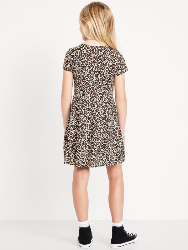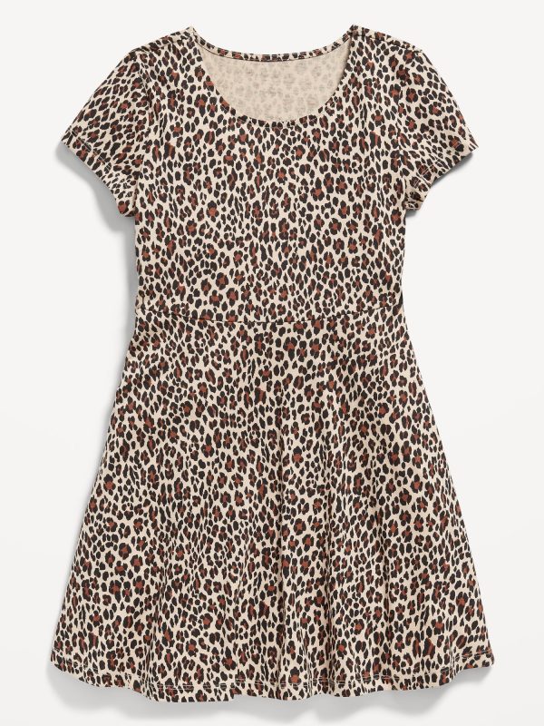 Printed Short-Sleeve Fit and Flare Dress for Girls