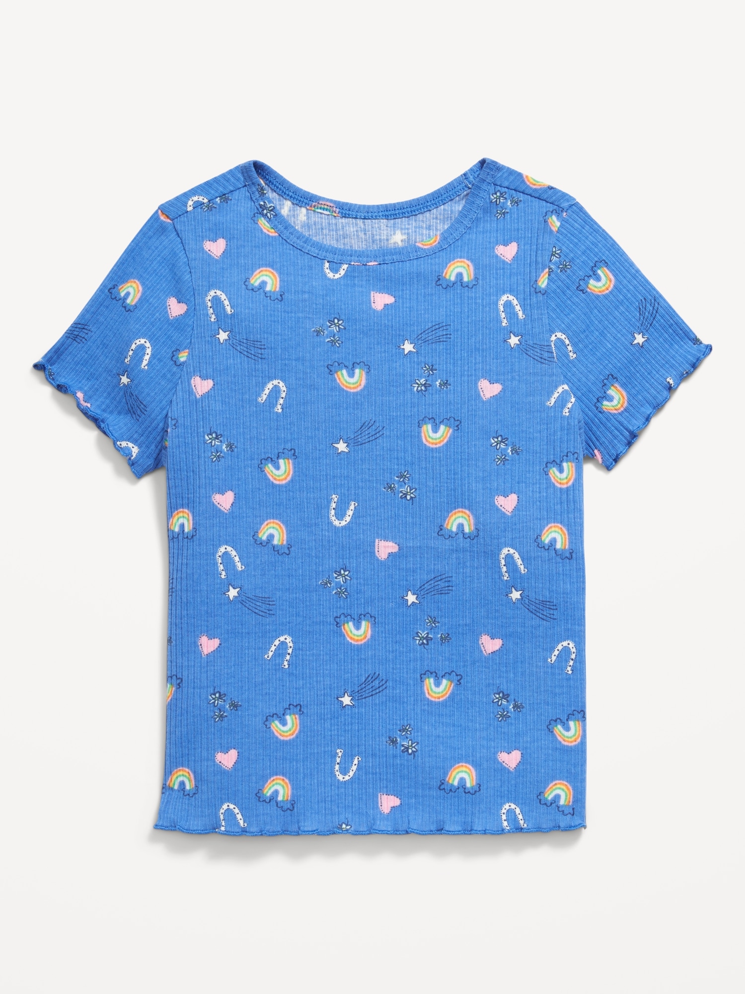 Printed Short-Sleeve Lettuce-Edge T-Shirt for Toddler Girls: Mix Match Go Productrounded neckline, short sleeves, lettuce edge cuffs and hem, all-over print, #690530