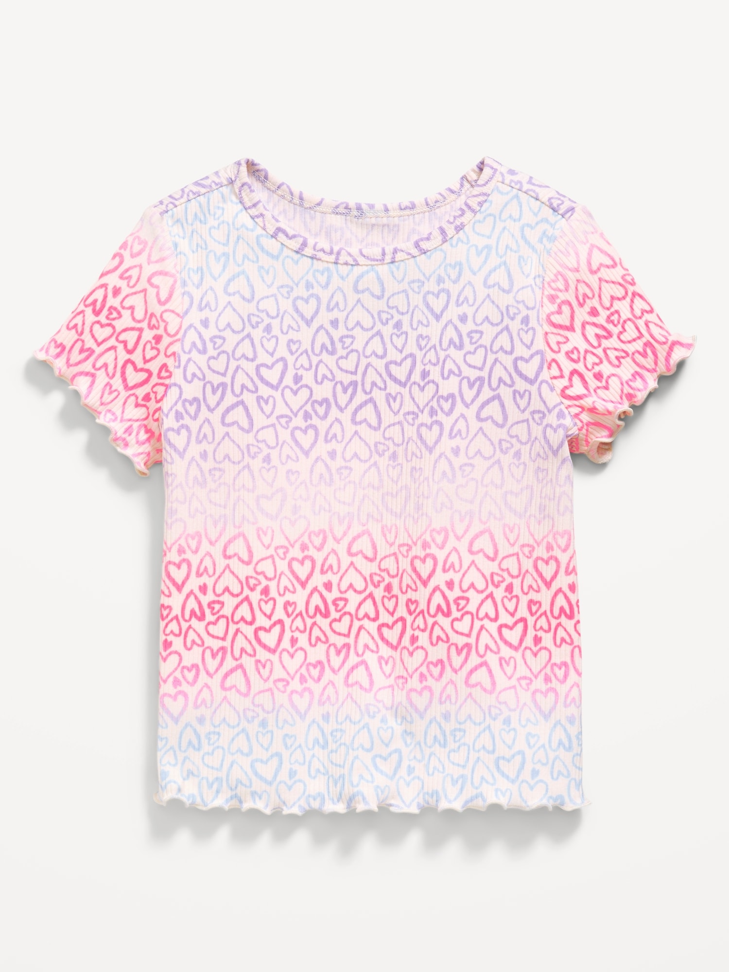 Printed Short-Sleeve Lettuce-Edge T-Shirt for Toddler Girls: Mix Match Go Productrounded neckline, short sleeves, lettuce edge cuffs and hem, all-over print, #690530