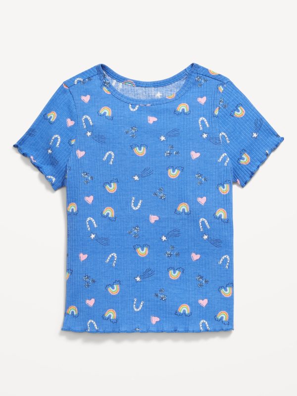 Printed Short-Sleeve Lettuce-Edge T-Shirt for Toddler Girls