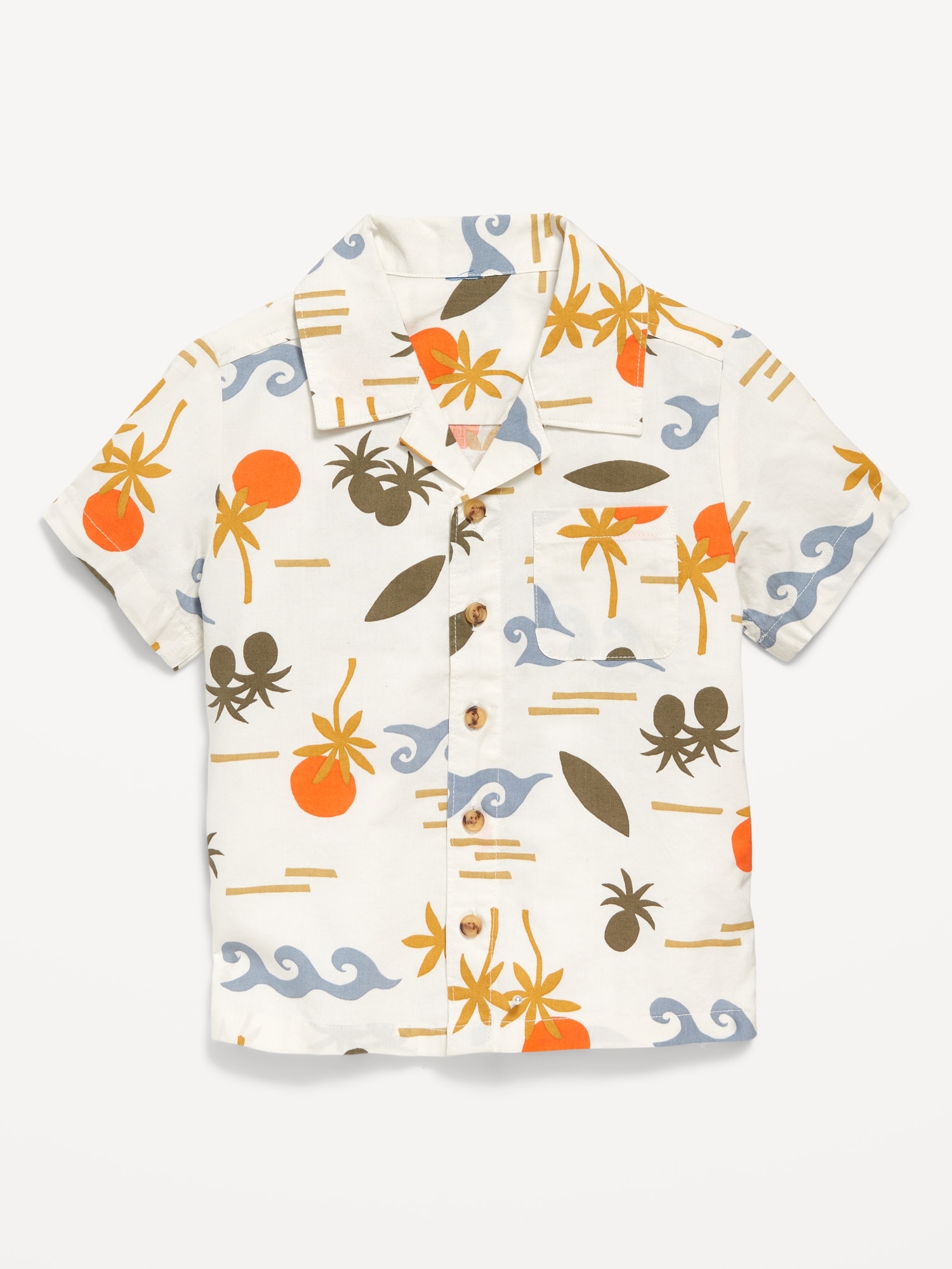 Printed Short-Sleeve Linen-Blend Shirt for Toddler Boys