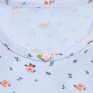 Printed Short-Sleeve Ribbed T-Shirt for Girls: crew neck, picot trim along neckline, short sleeves, all-over floral print, #766971