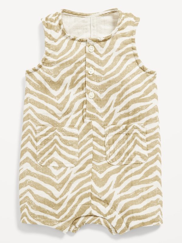 Printed Sleeveless Double-Weave Henley One-Piece Romper for Baby