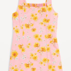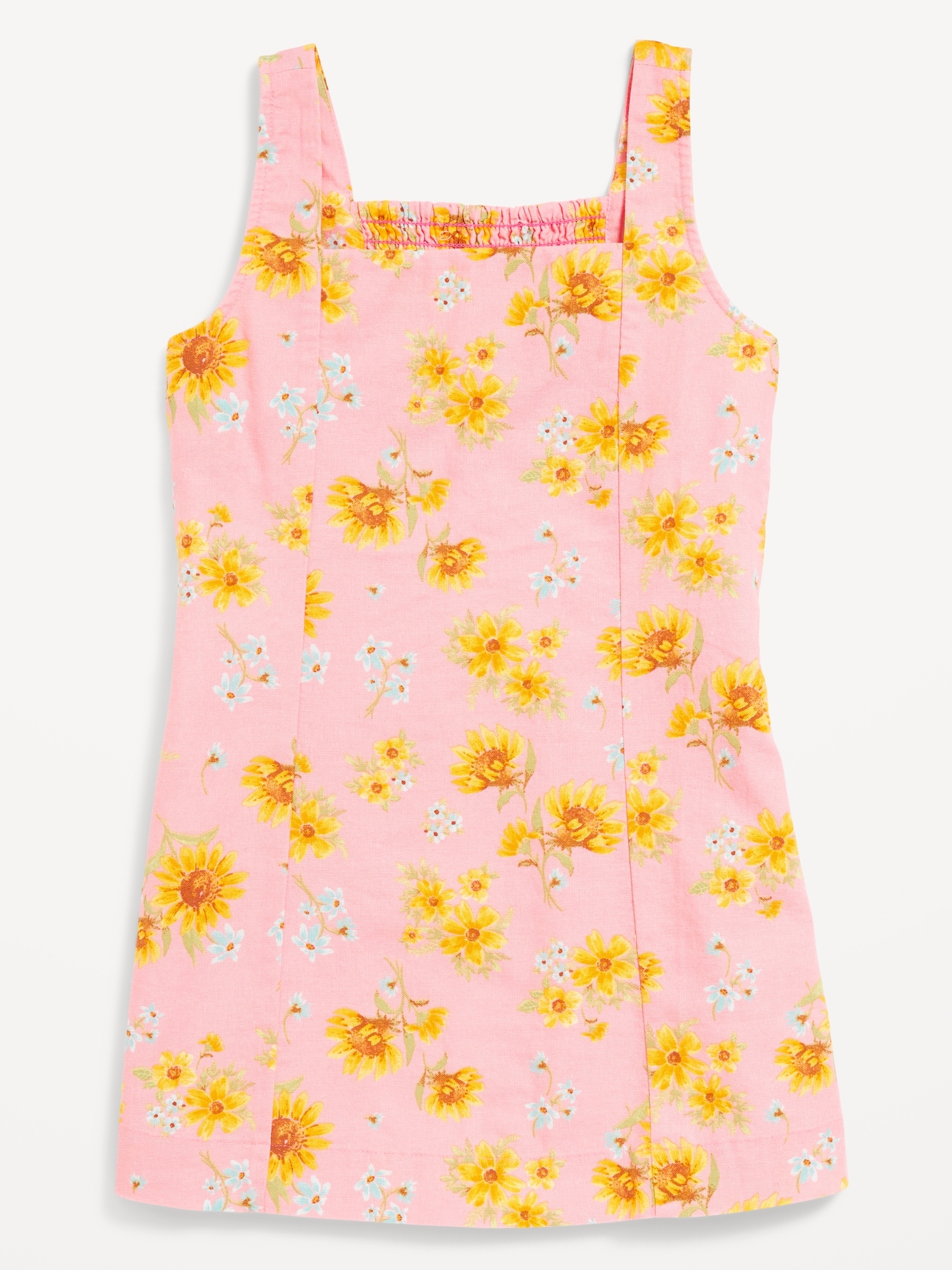 Printed Sleeveless Linen-Blend Shift Dress for Girls: square neck, wide shoulder straps, smocked back, #759487
