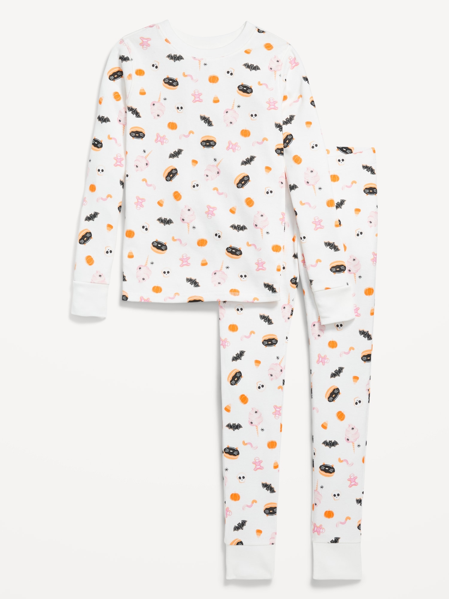 Printed Snug-Fit Graphic Pajama Set for Girls: If you’ve got it, haunt it—in our matching jammies.crew neck, long sleeves, matching pajama pants, elasticized waist, all-over print, online exclusive, #804192